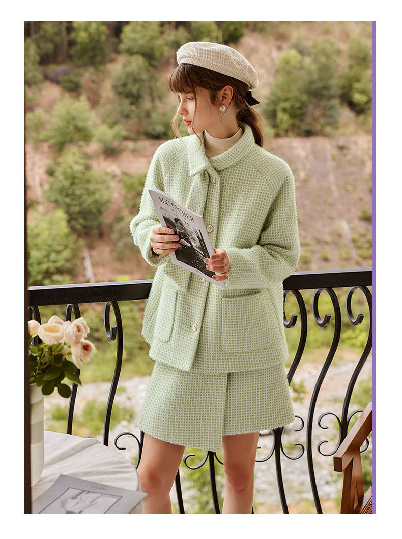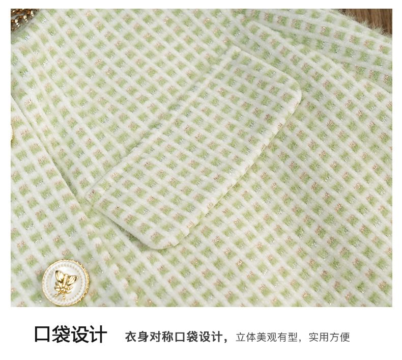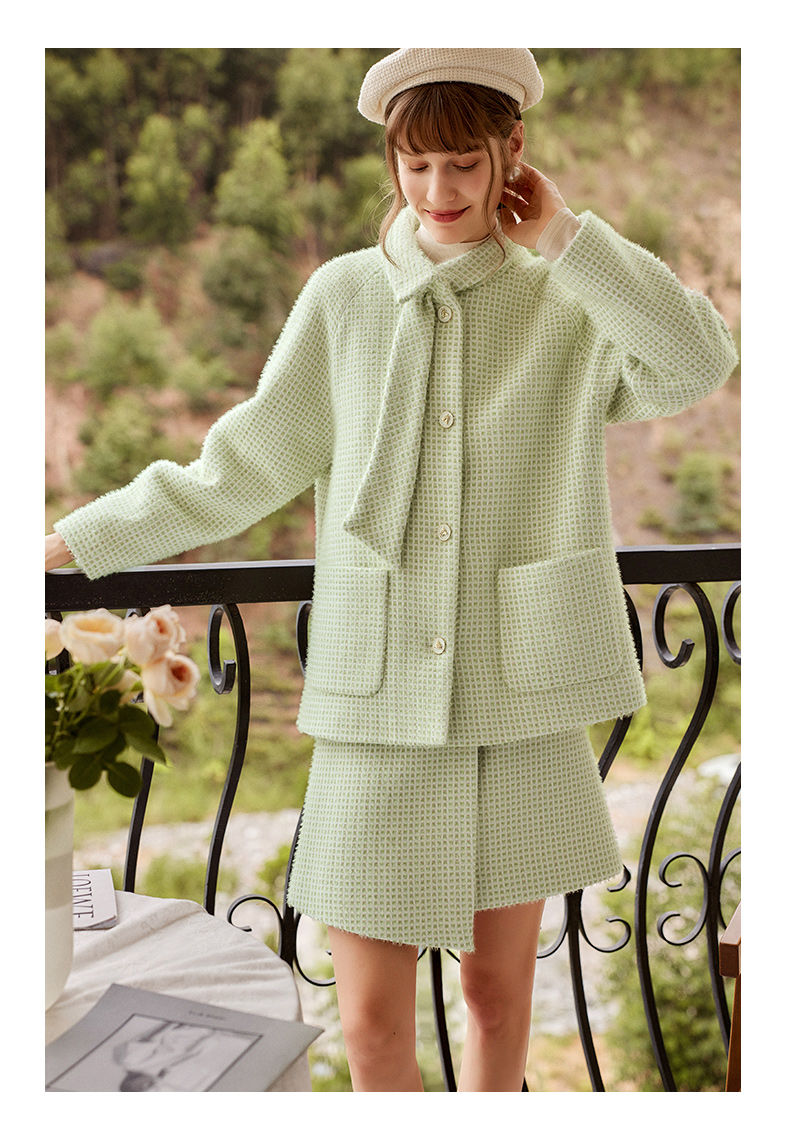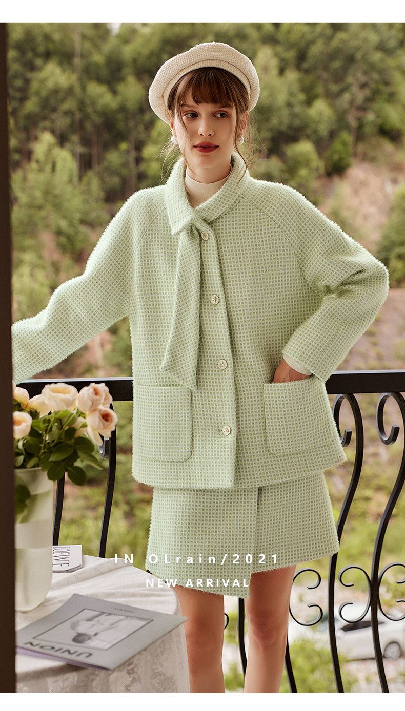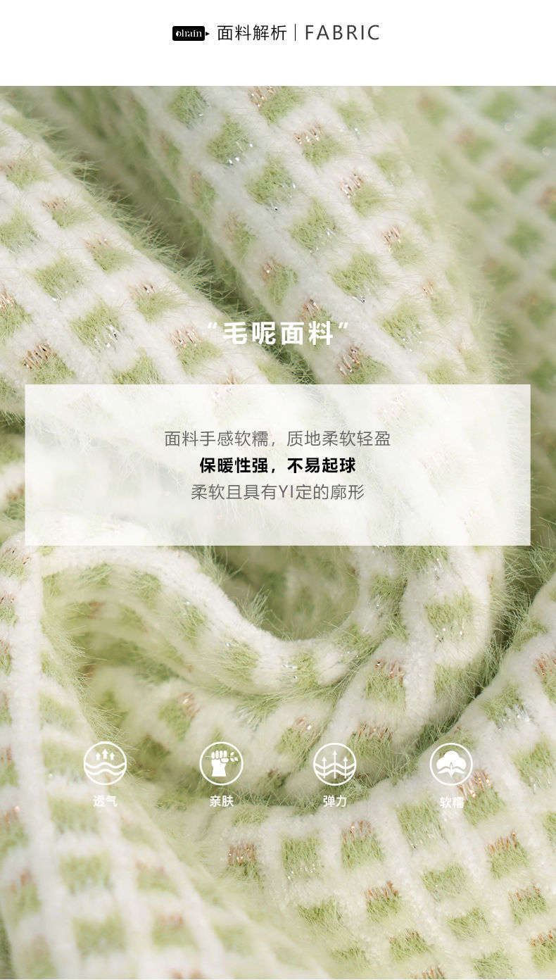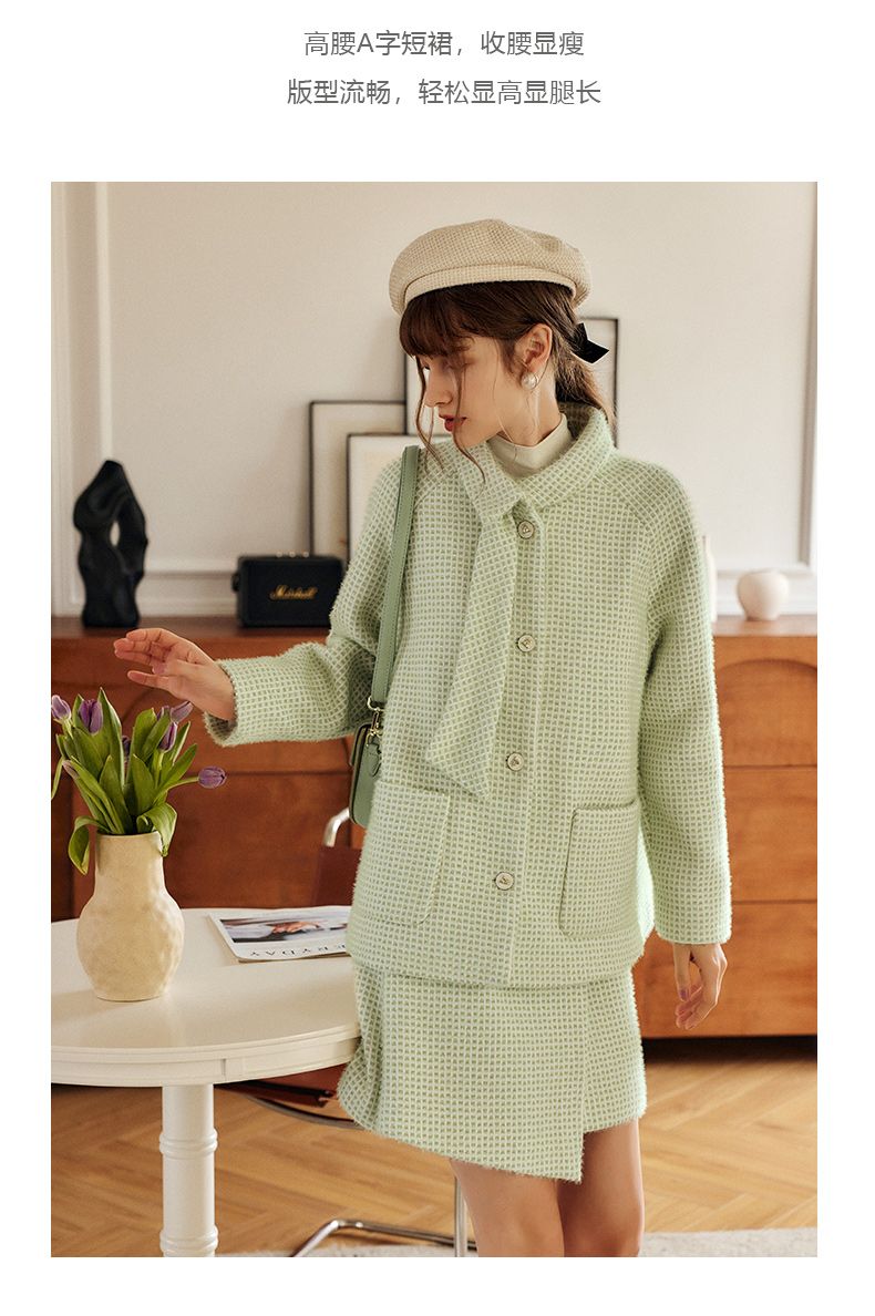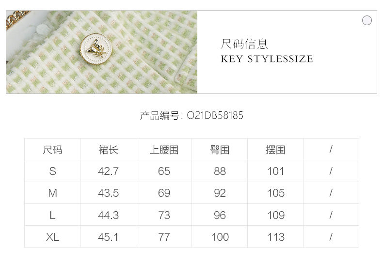 欧芮儿绿色格子半身裙女春装新款2025高腰显瘦气质复古不规则裙子