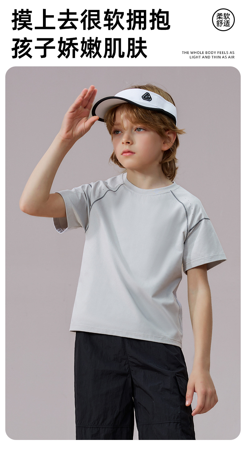 【39元1件起】儿童短袖夏季薄款男童速干透气运动上衣女孩中大童百搭短袖T恤-6008697065