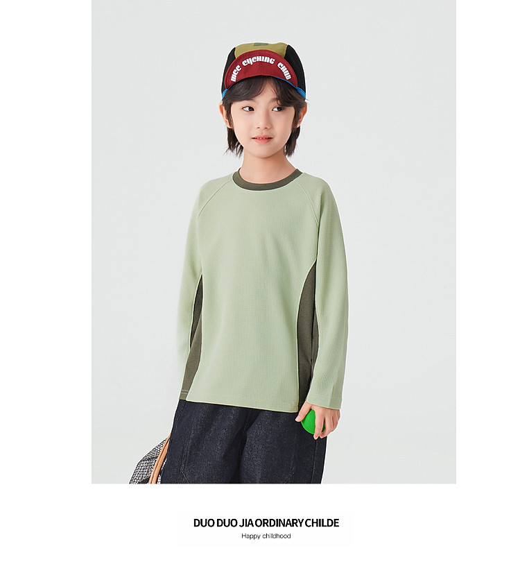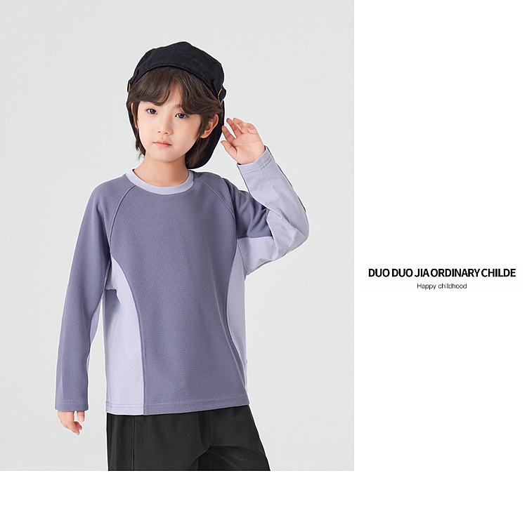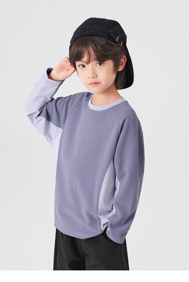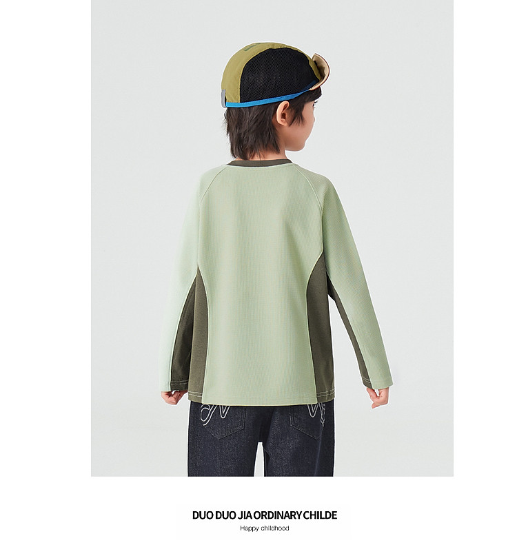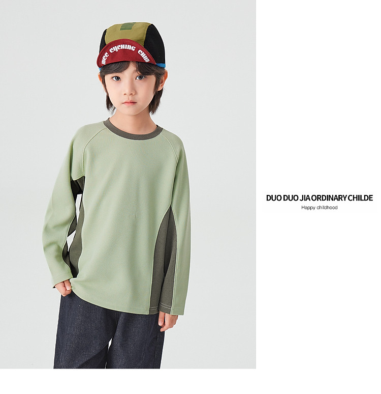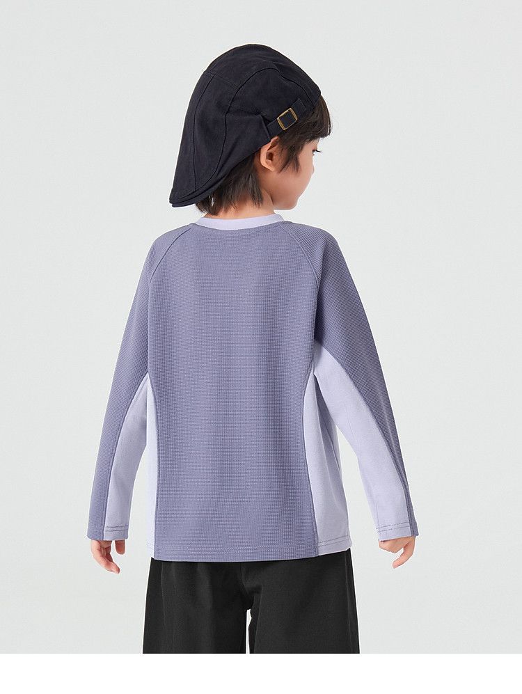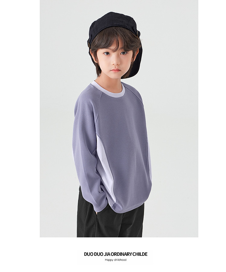 【件件底价,童装双倍积分】多多家男童运动T恤长袖春秋2026新款儿童男孩拼色华夫格洋气上衣11322