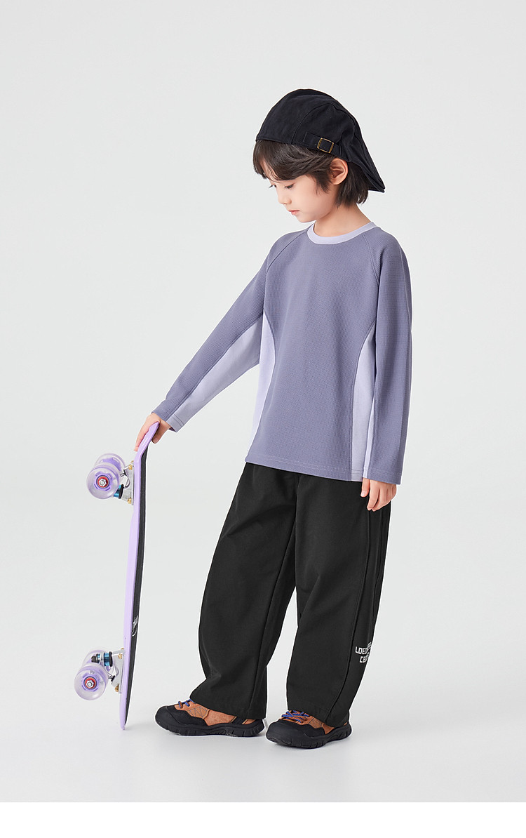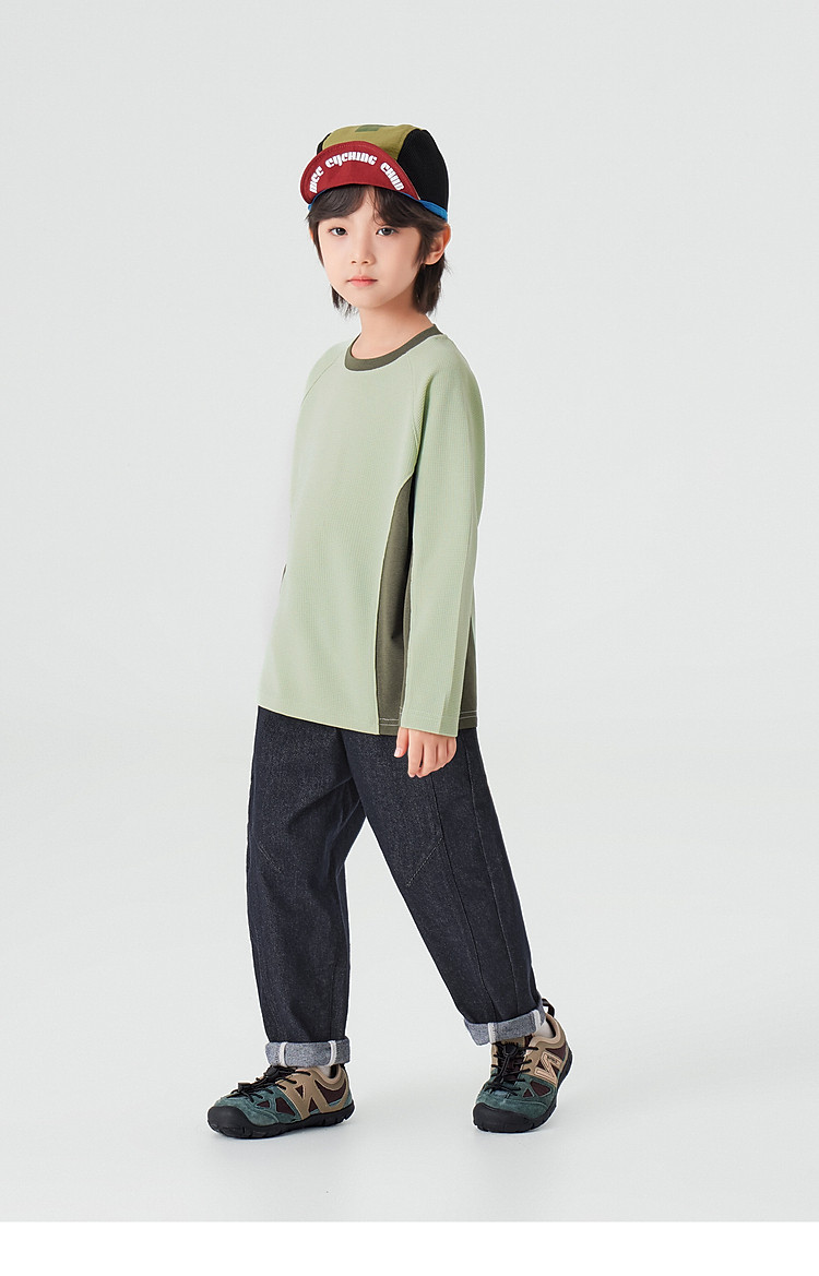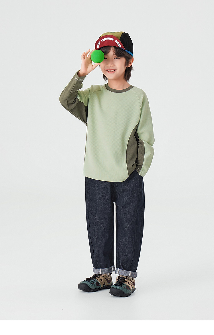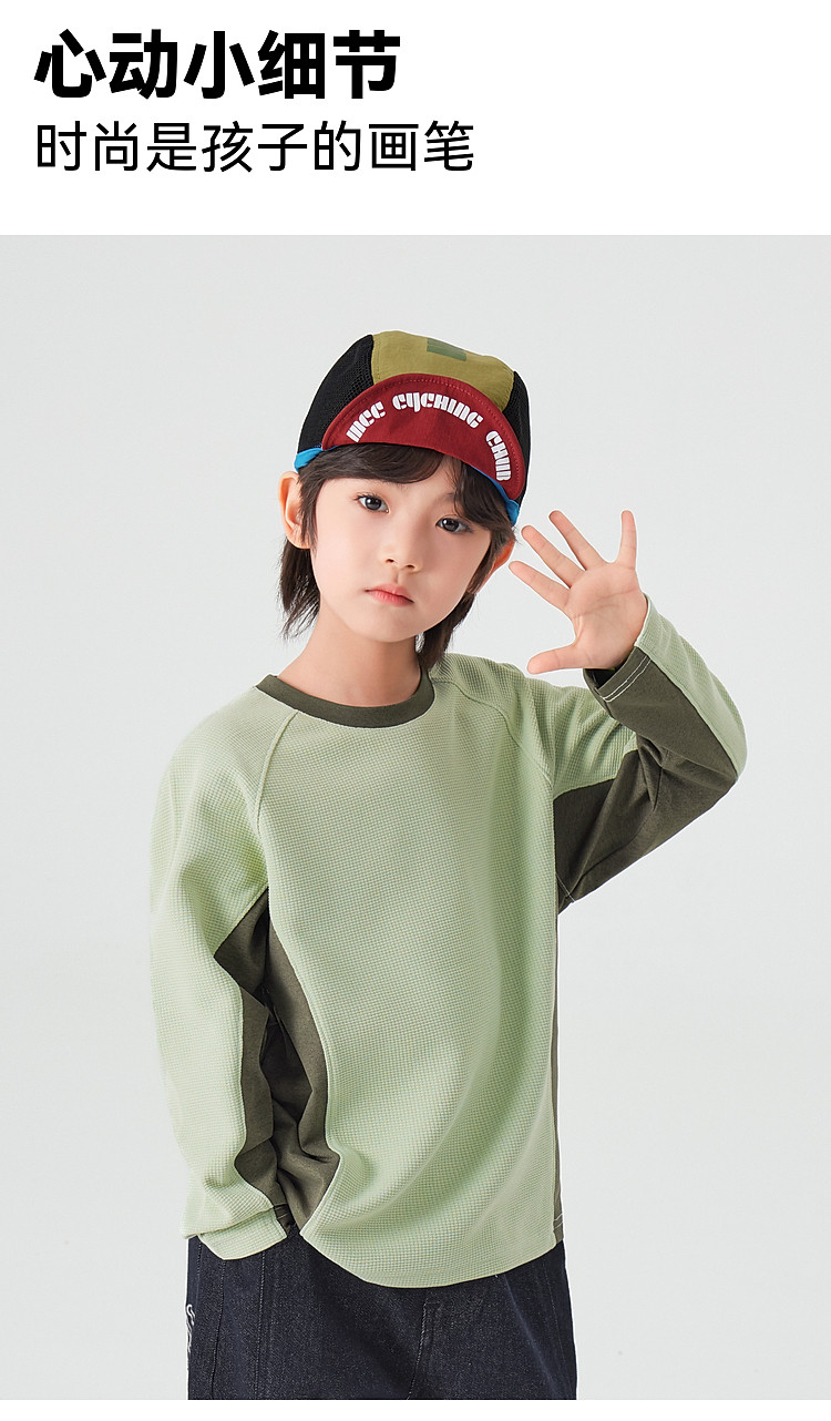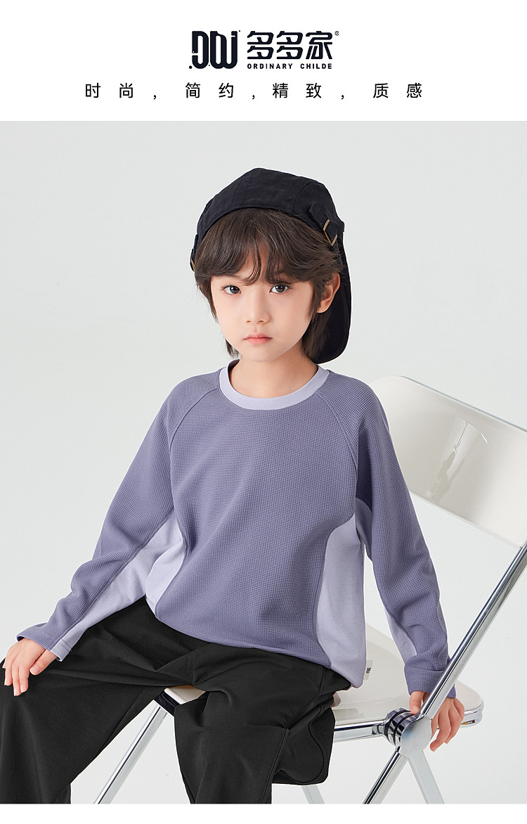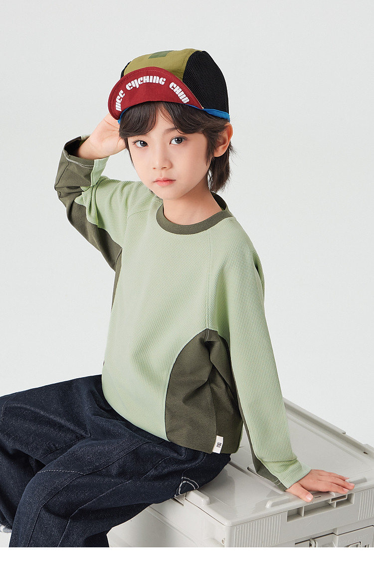【件件底价,童装双倍积分】多多家男童运动T恤长袖春秋2026新款儿童男孩拼色华夫格洋气上衣11322