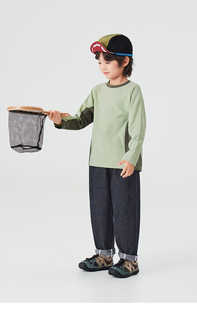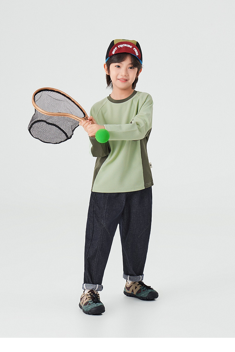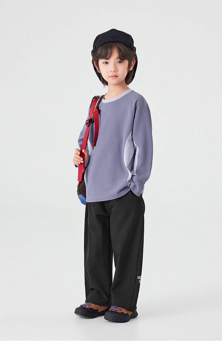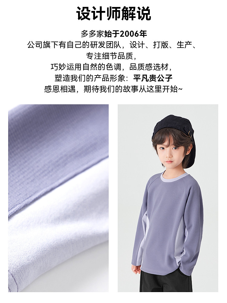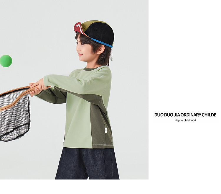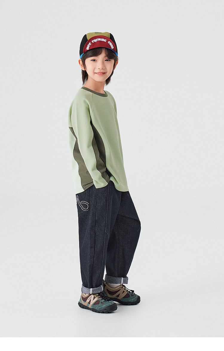 【件件底价,童装双倍积分】多多家男童运动T恤长袖春秋2026新款儿童男孩拼色华夫格洋气上衣11322