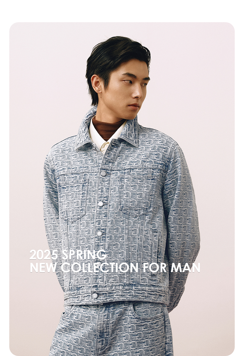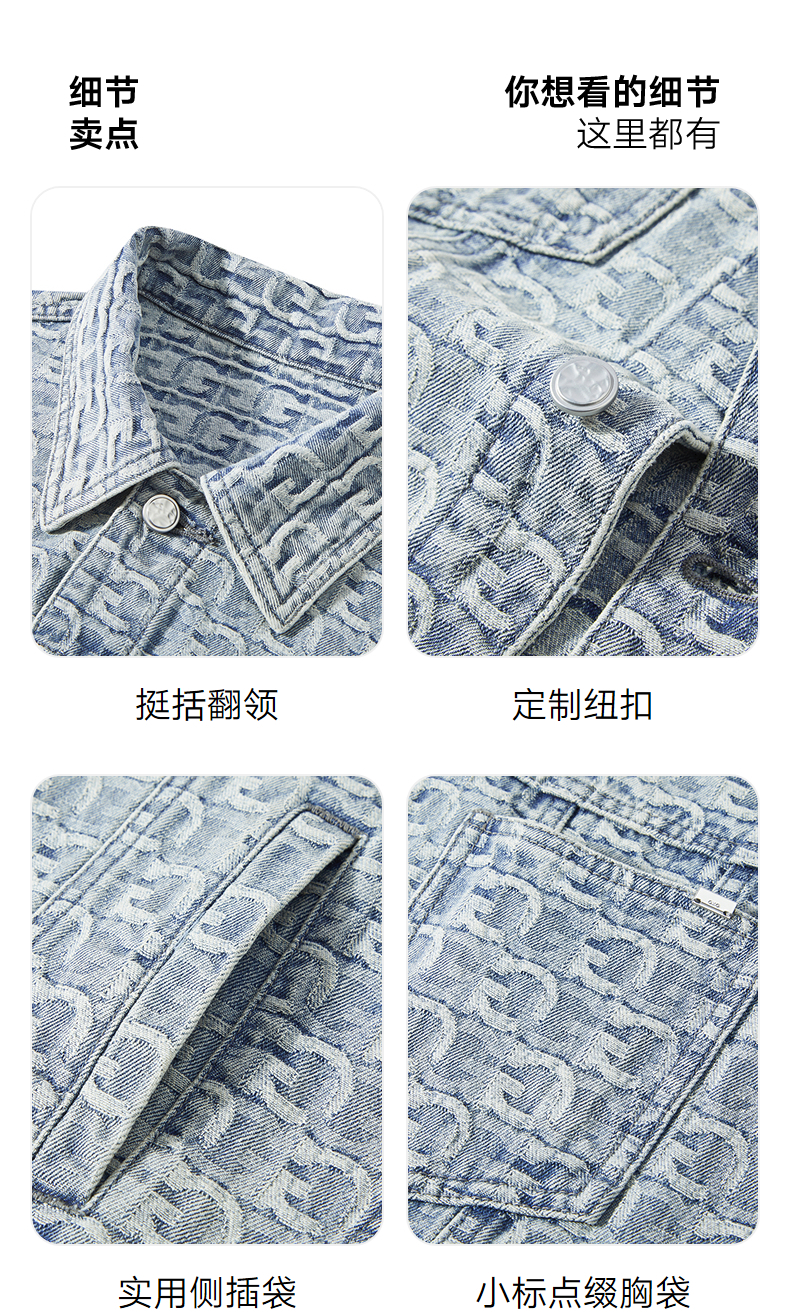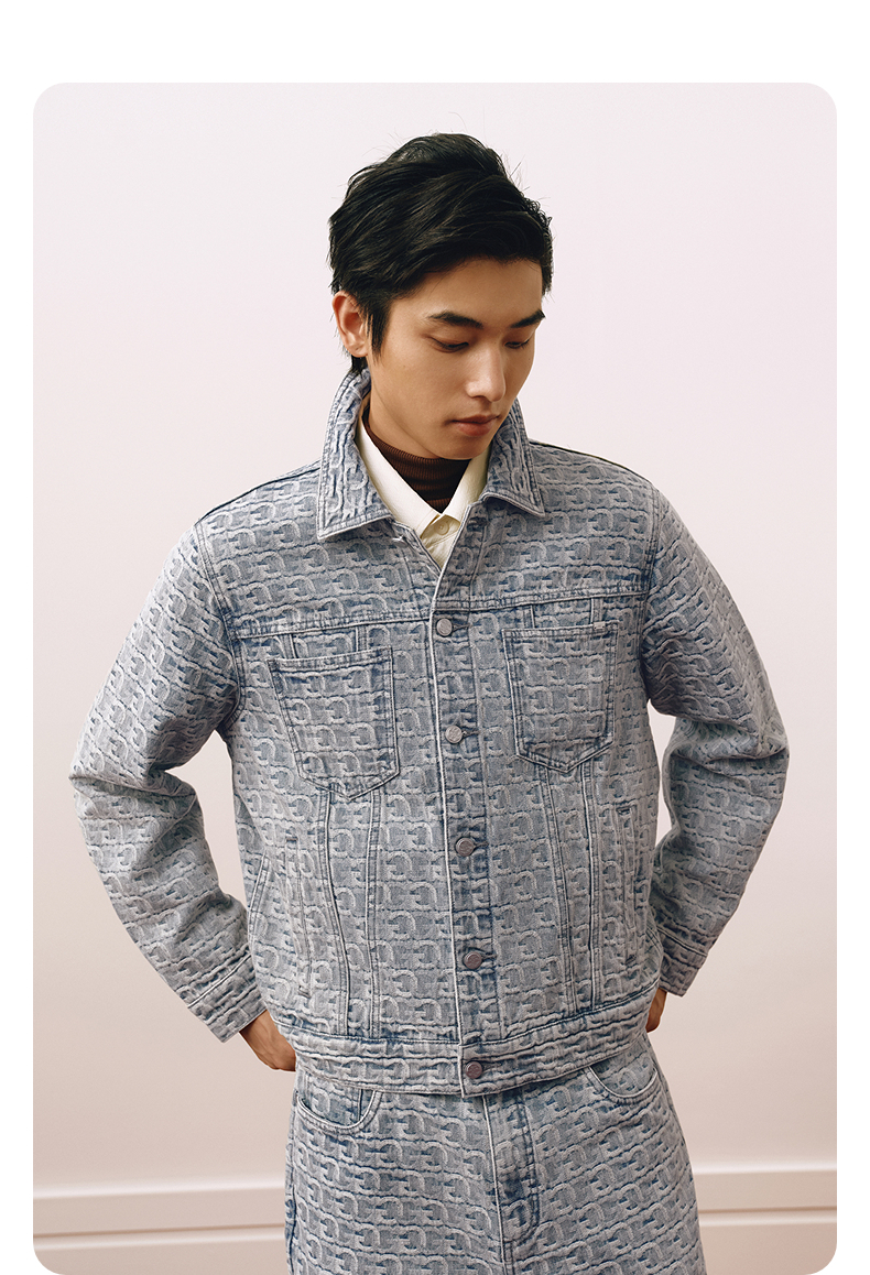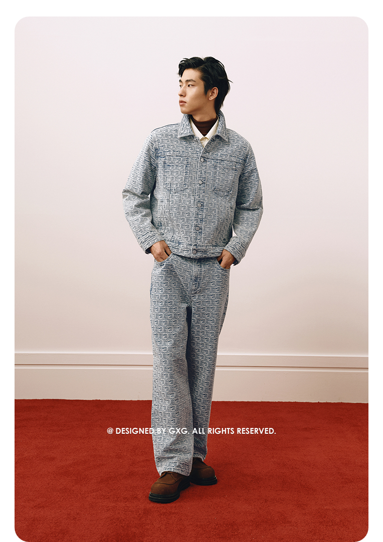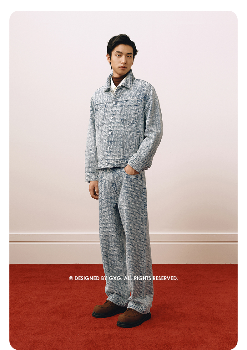 GXG男装 新年系列复古水洗提花休闲多搭牛仔夹克外套 25年春热卖