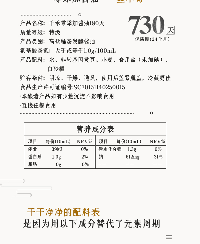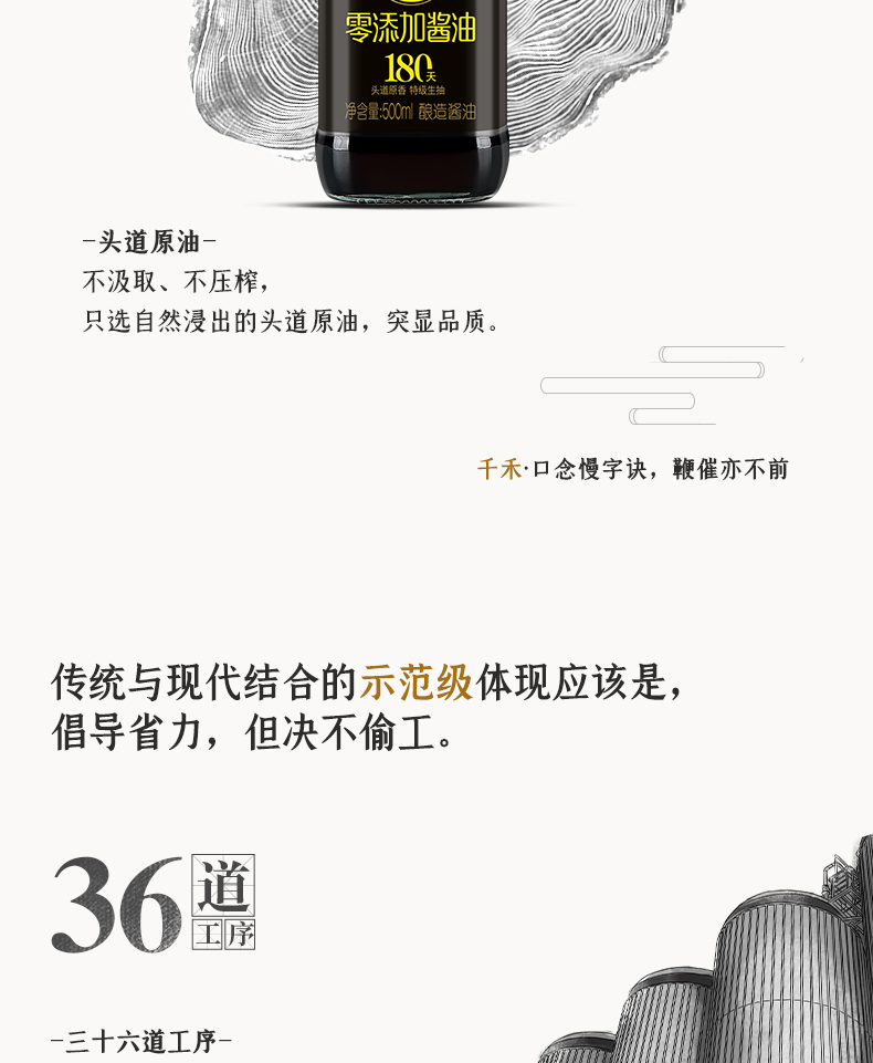 千禾 酱油 180天特级生抽 500ml 不使用添加剂