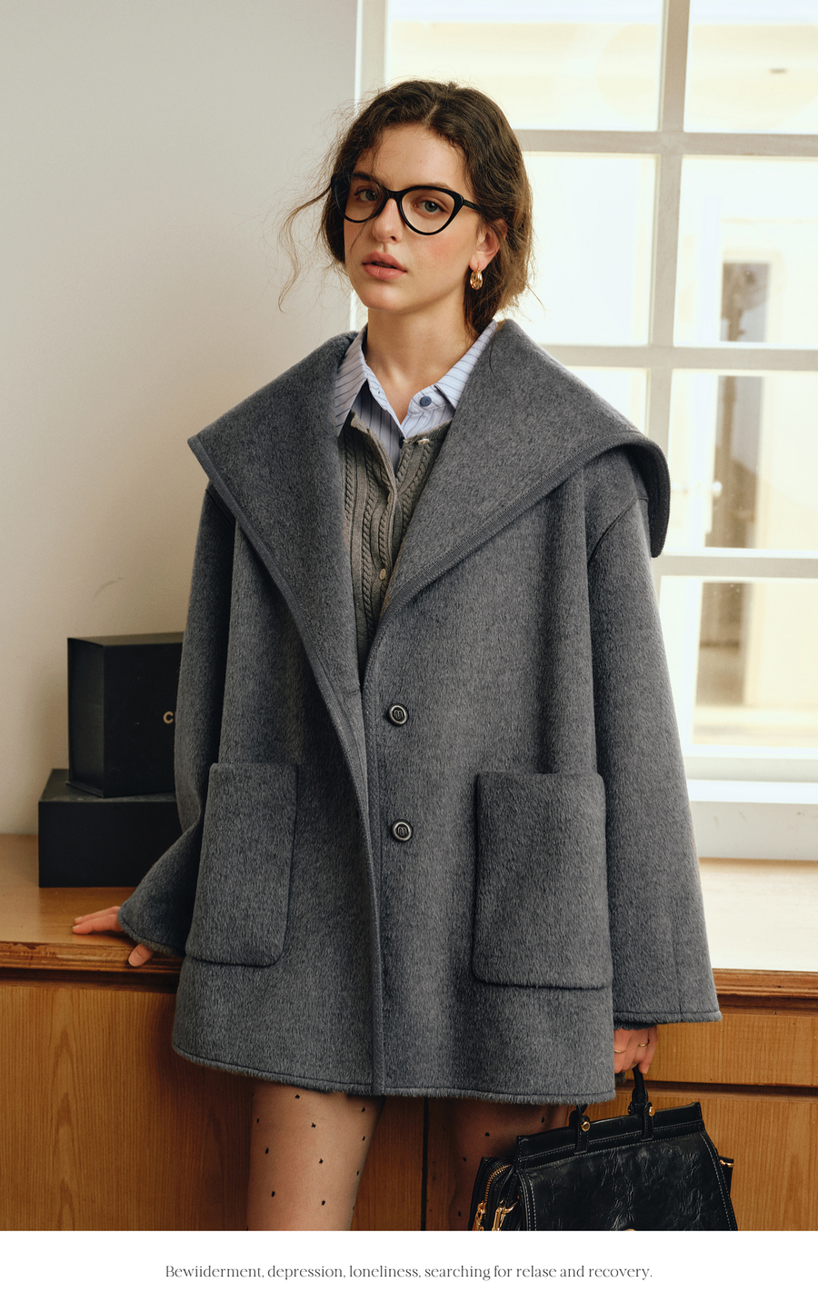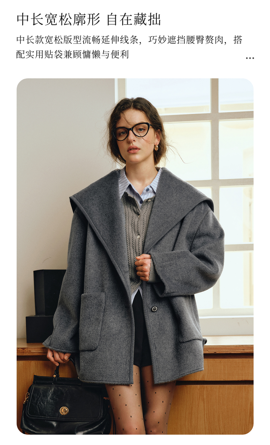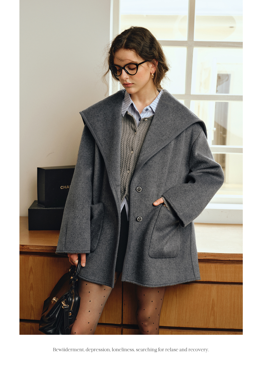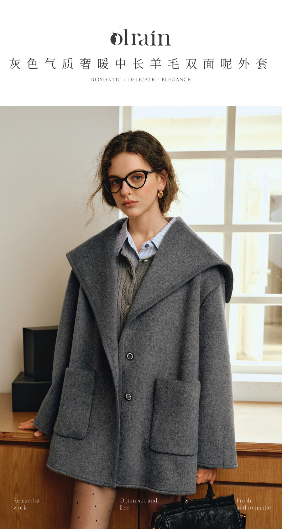 OLrain欧芮儿2025新款秋季灰色气质奢暖中长款羊毛大衣双面呢外套