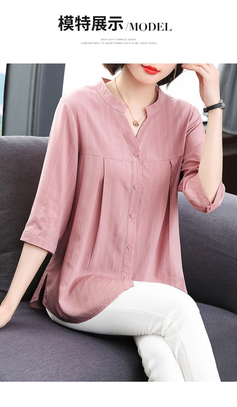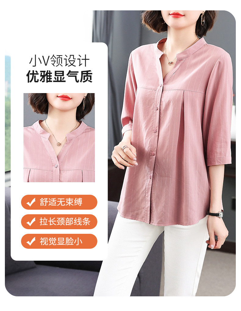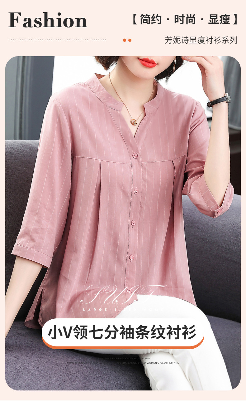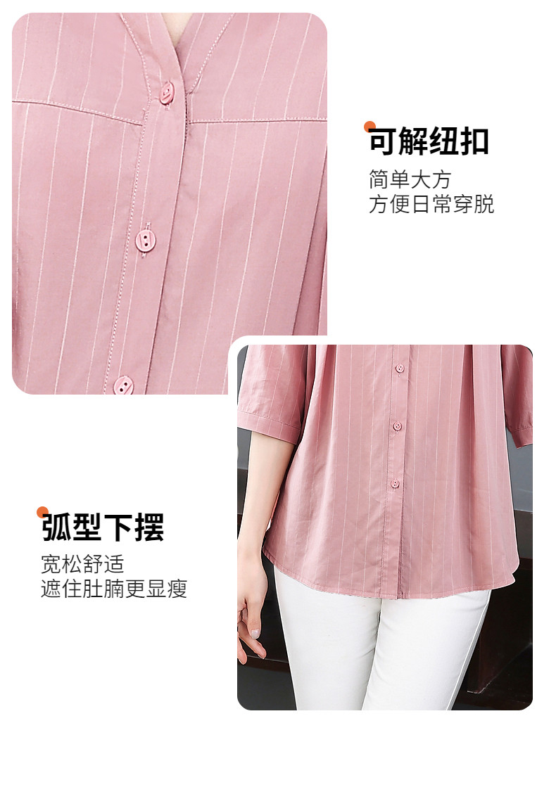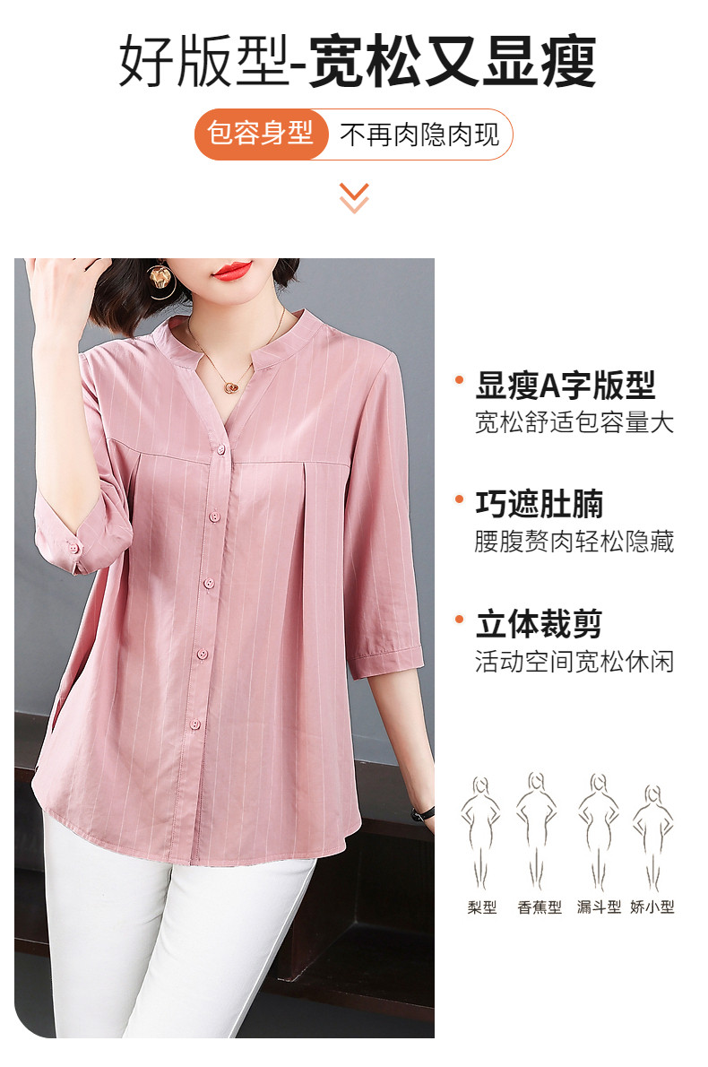 条纹衬衫女士春春装新款妈妈减龄时尚洋气小衫大码衬衣七分袖上衣