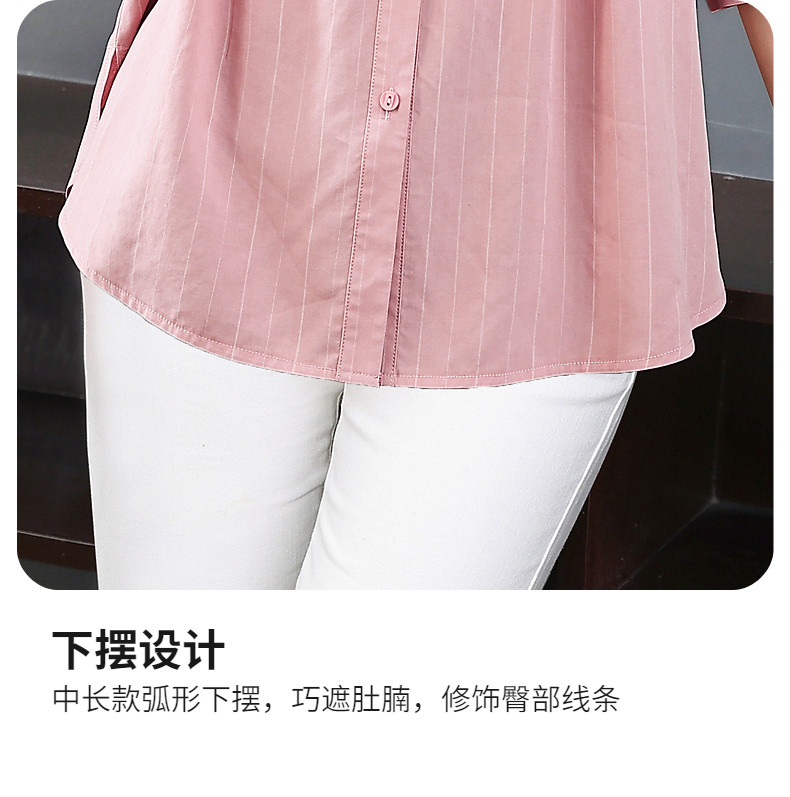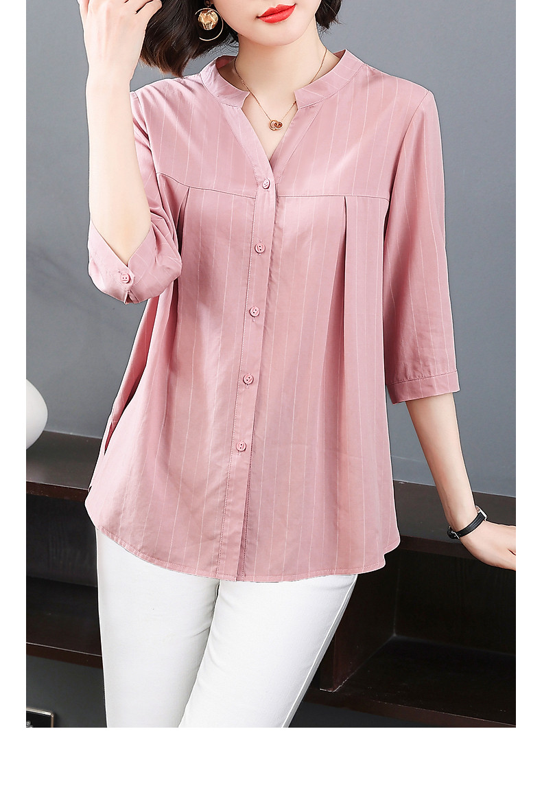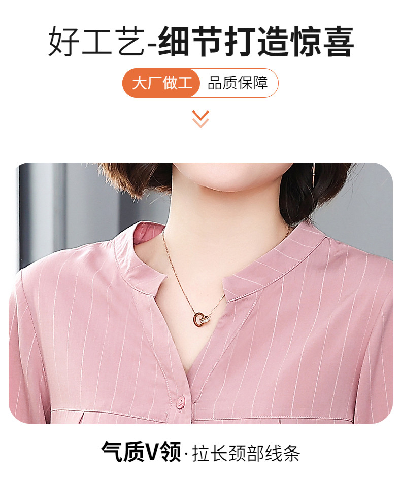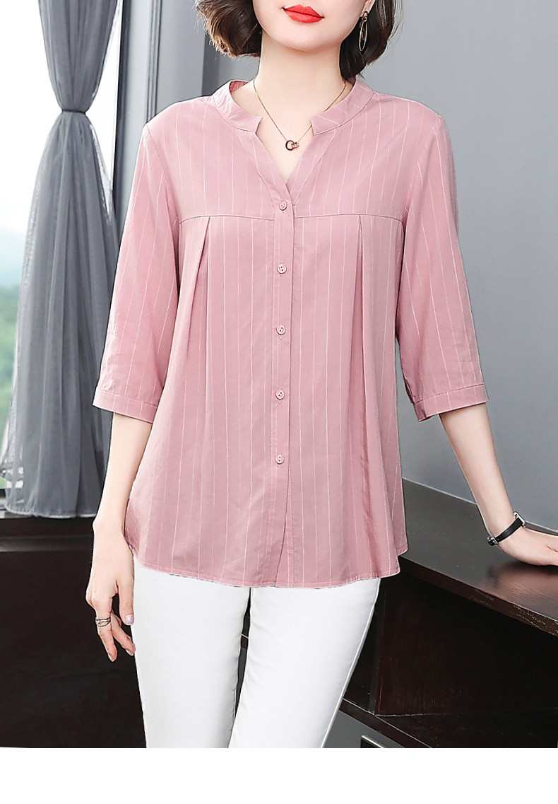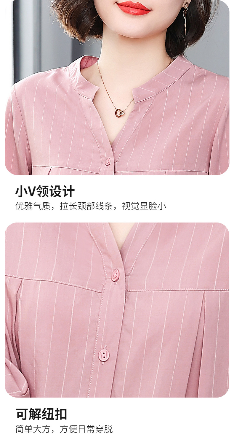 条纹衬衫女士春春装新款妈妈减龄时尚洋气小衫大码衬衣七分袖上衣