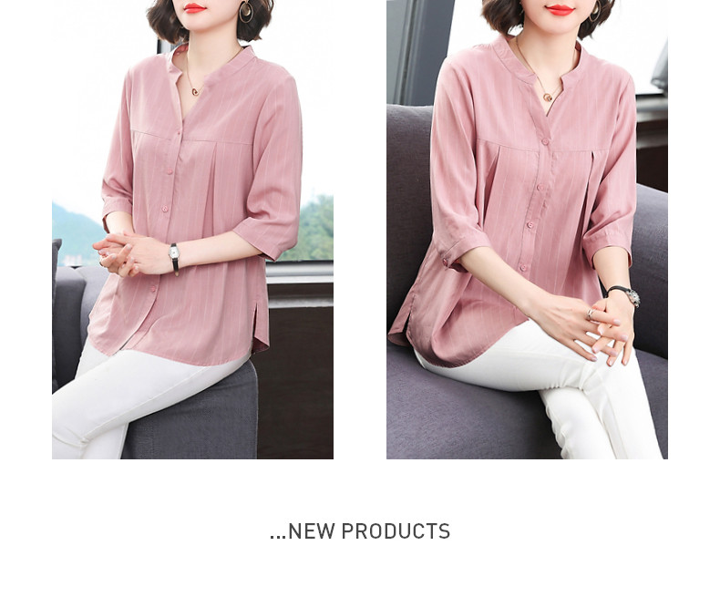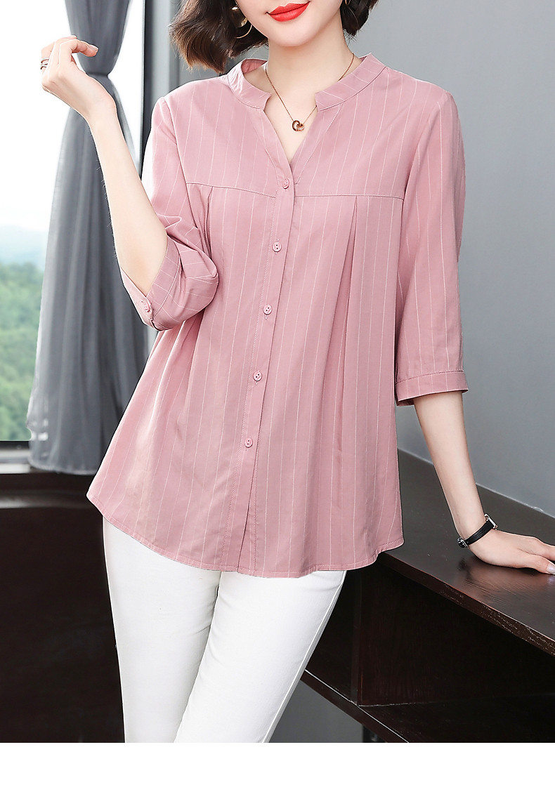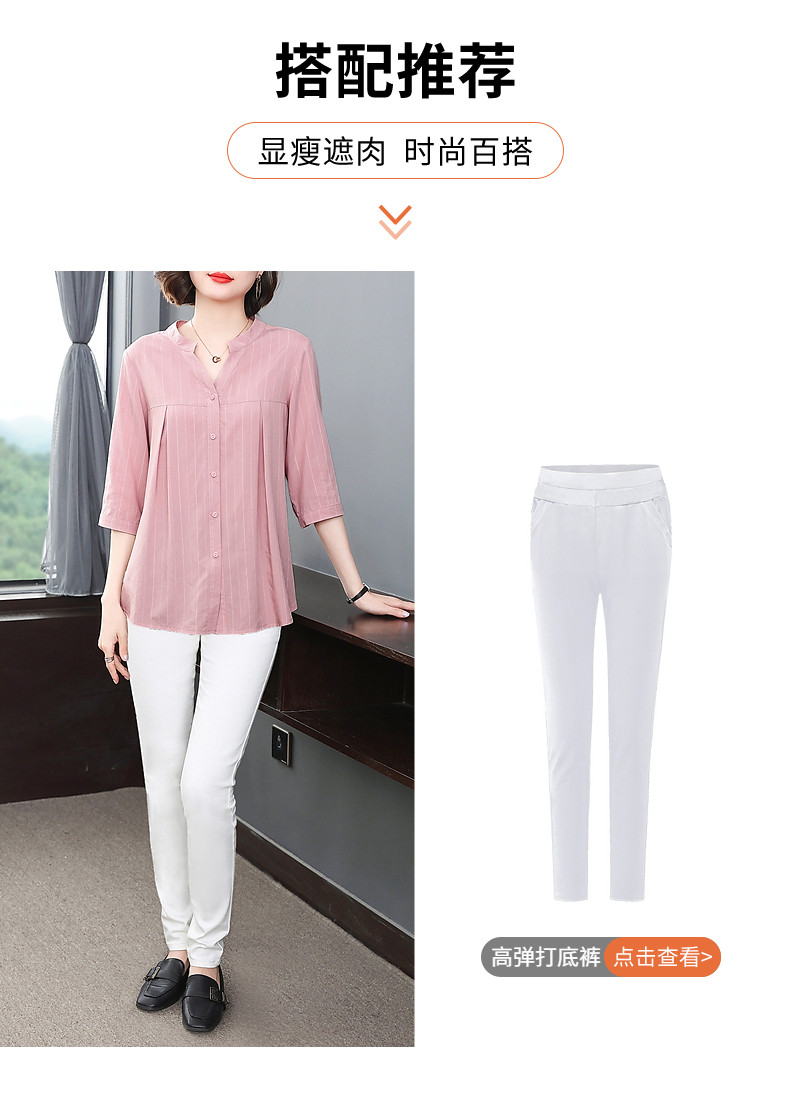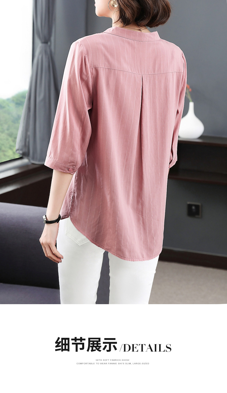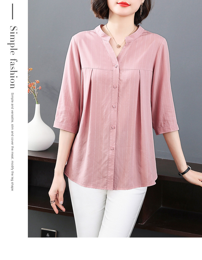 条纹衬衫女士春春装新款妈妈减龄时尚洋气小衫大码衬衣七分袖上衣