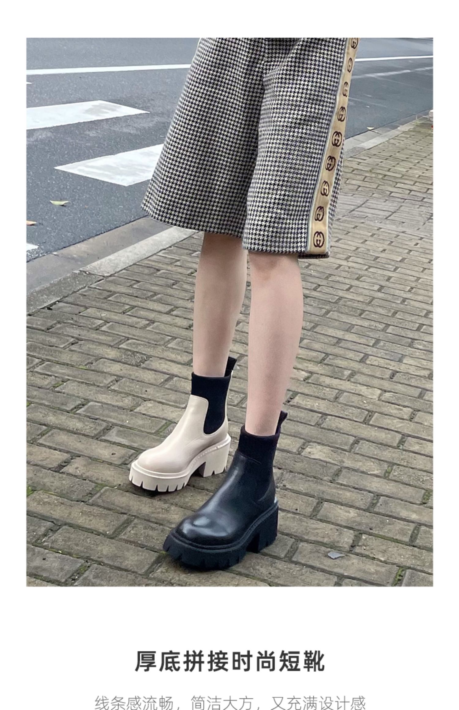 westory2021年秋冬新款增高马丁靴厚底粗跟烟管靴子烟管靴W21DS81471
