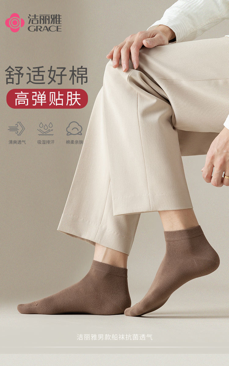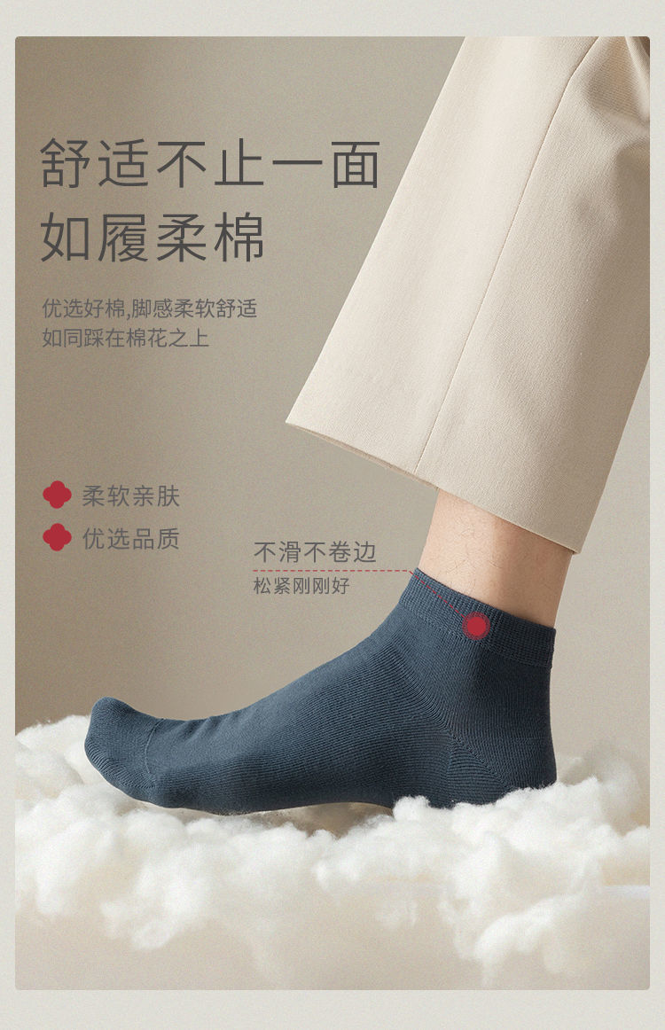 【男短袜5双装】纯棉浅口薄款低帮防臭吸汗纯色