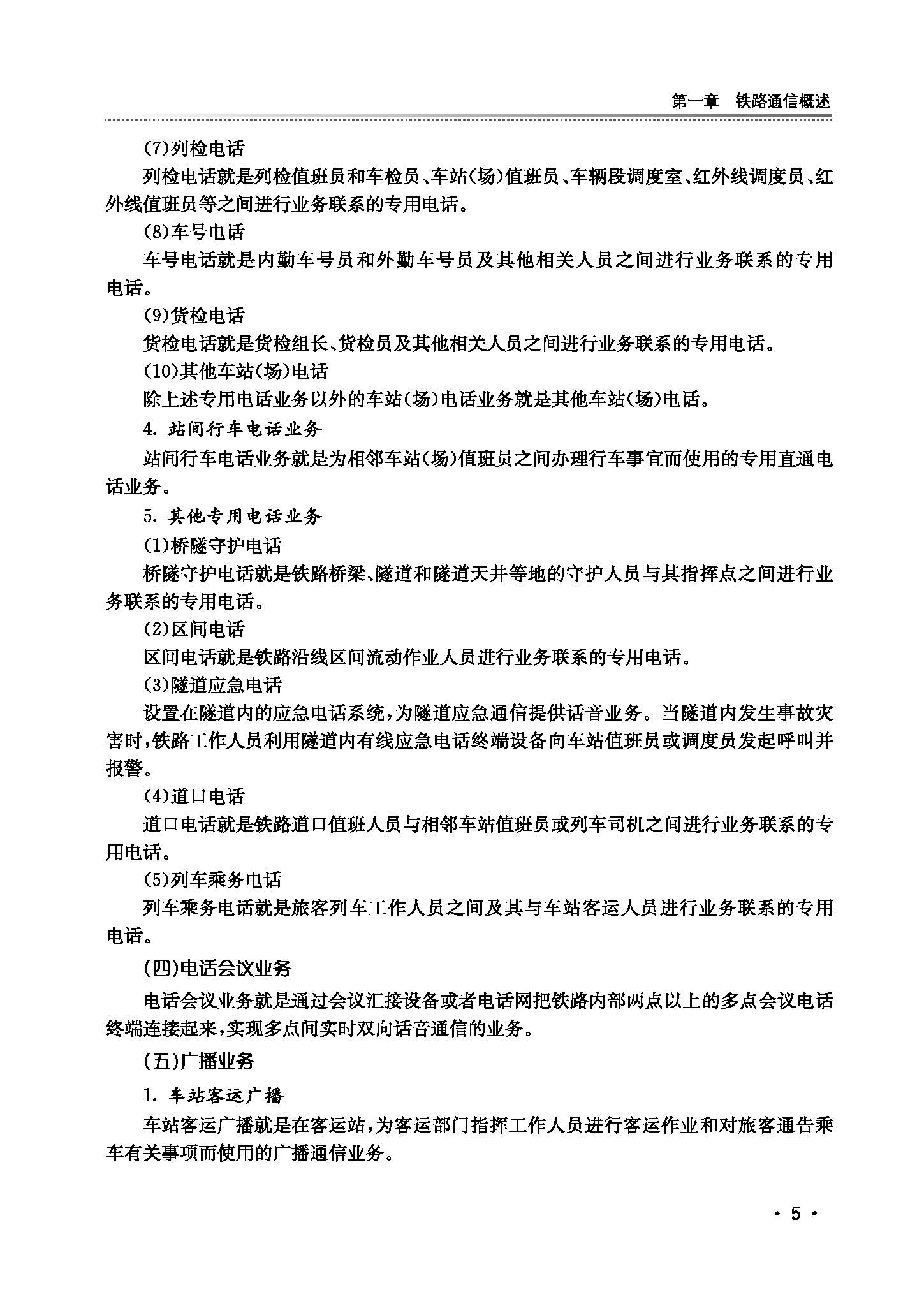 全书共分十一章,分别介绍了铁路通信业务、铁路专用通信的特点;数字调度通信的基础知识;数字调度通信系统结构原理;佳讯数字调度通信设备结构原理;中软数字调度通信设备结构原理;站场广播系统组成及原理;闭路电视监控系统结构及工作原理;会议电视系统结构及工作原理;应急通信系统结构及原理;数字集群通信系统结构及原理;铁路综合数字移动通信系统(GSM-R)的组网结构、系统功能及工作原理;机车综合无线通信设备(CIR)、450 MHz无线列调系统和列车防护报警装置(LBJ)的基本结构、系统功能及工作原理。