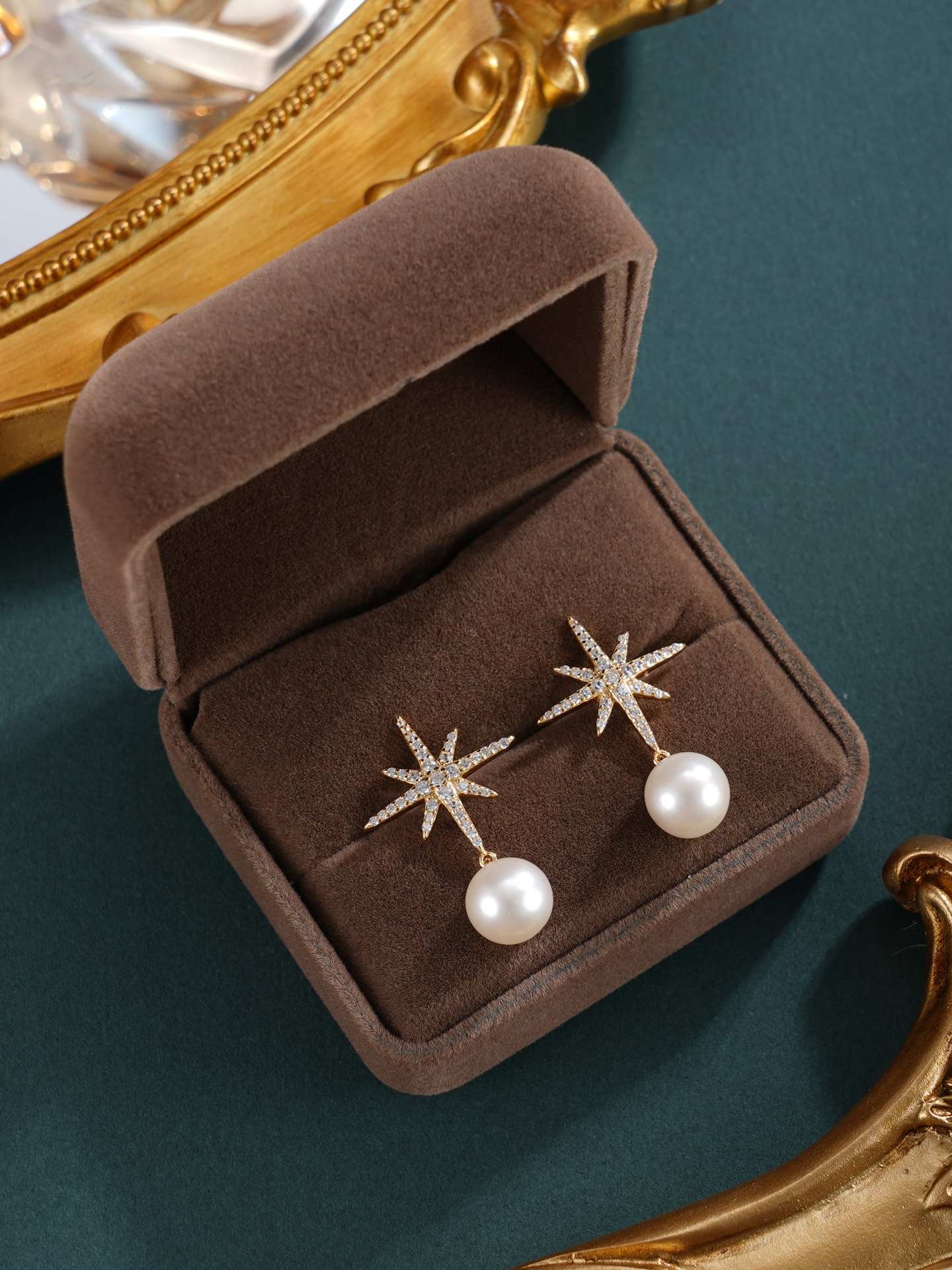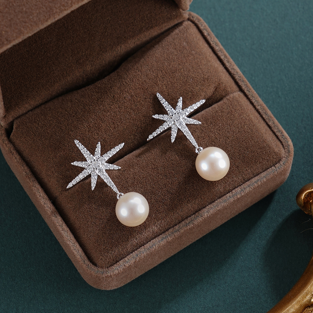 子佩集【星芒之秀】银S925珍珠惜王妃耳钉【X7532】8.5mm珠双色星芒2601