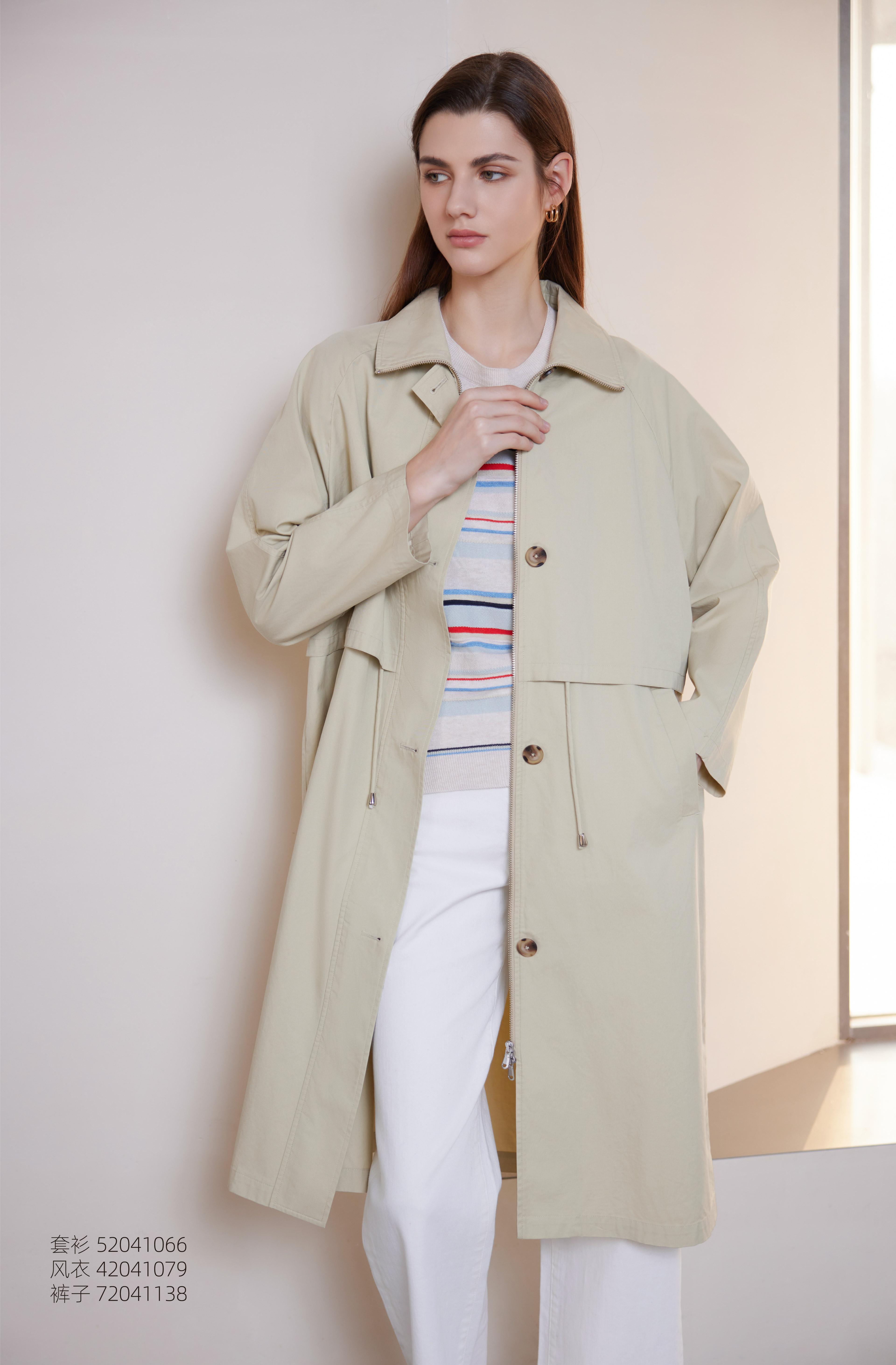 【中长款风衣外套】24年春夏女士新品垂感长袖过膝女外套