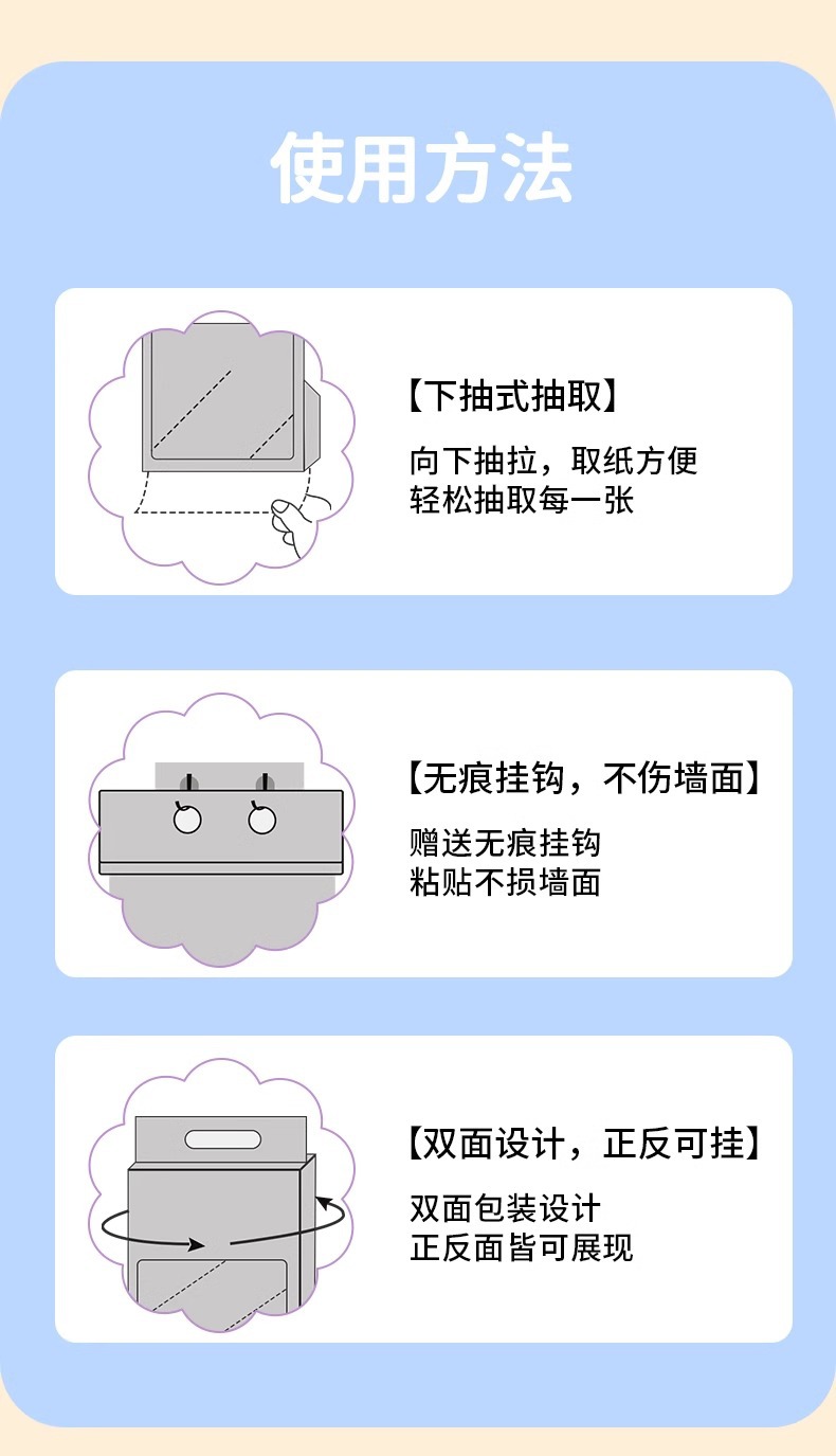 子初牌厨房清洁卫生湿巾 200*150mm 60抽/包*6包(送背胶+挂钩)