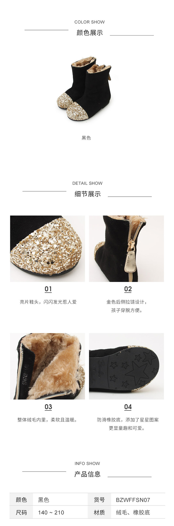 【云优选】pureshare 蓬纱馆 | BIMBO BIMBA 女童儿童筒靴新款秋冬季亮片黑色保暖加绒筒靴可爱-亮片保暖筒靴