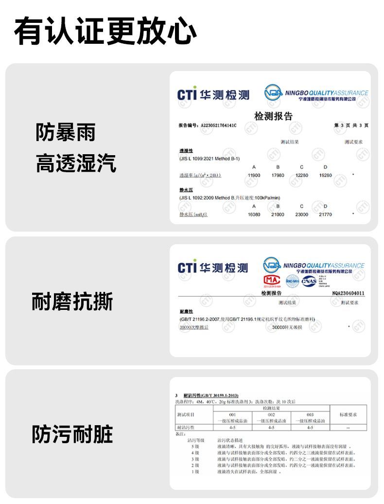● 耐磨3万次 无破损,4-5级耐沾污性!