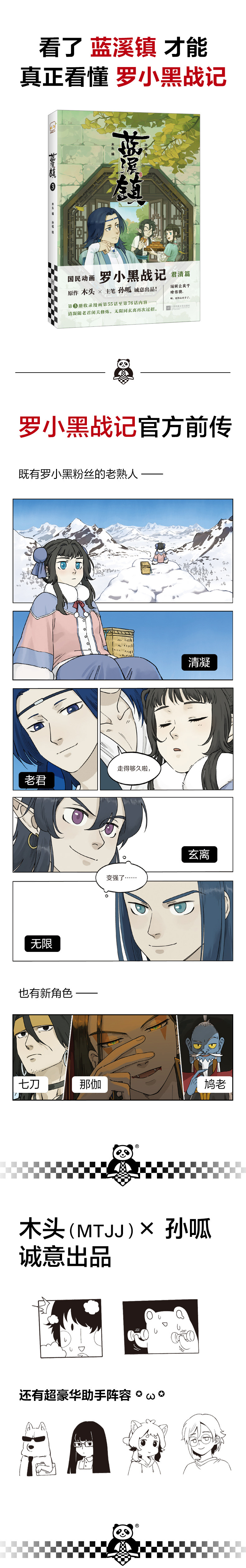 《罗小黑战记》君清篇单行本第3册!看了《蓝溪镇》,才能真正看懂《罗小黑战记》。 《罗小黑战记》原作木头(MTJJ)搭档漫画家孙呱,诚意出品! 本册收录漫画连载第55话至第76话内容——清凝随老君闭关修炼,无限同玄离再次过招。 新增番外,首度公开《蓝溪镇》创作历程! 哔哩哔哩漫画连载评分9.9!微博条条转评赞破万! 木头有话说:“编辑让我干啥你猜。啊,更得心应手了。” 走过很多地方后才发现,原来我只想陪在你身边。