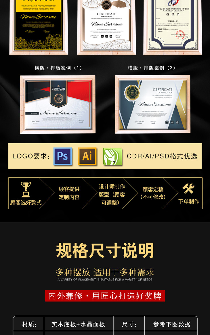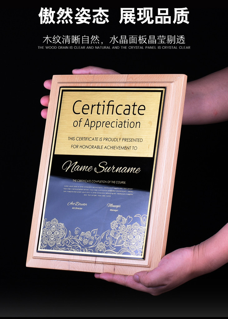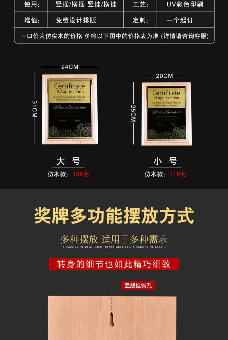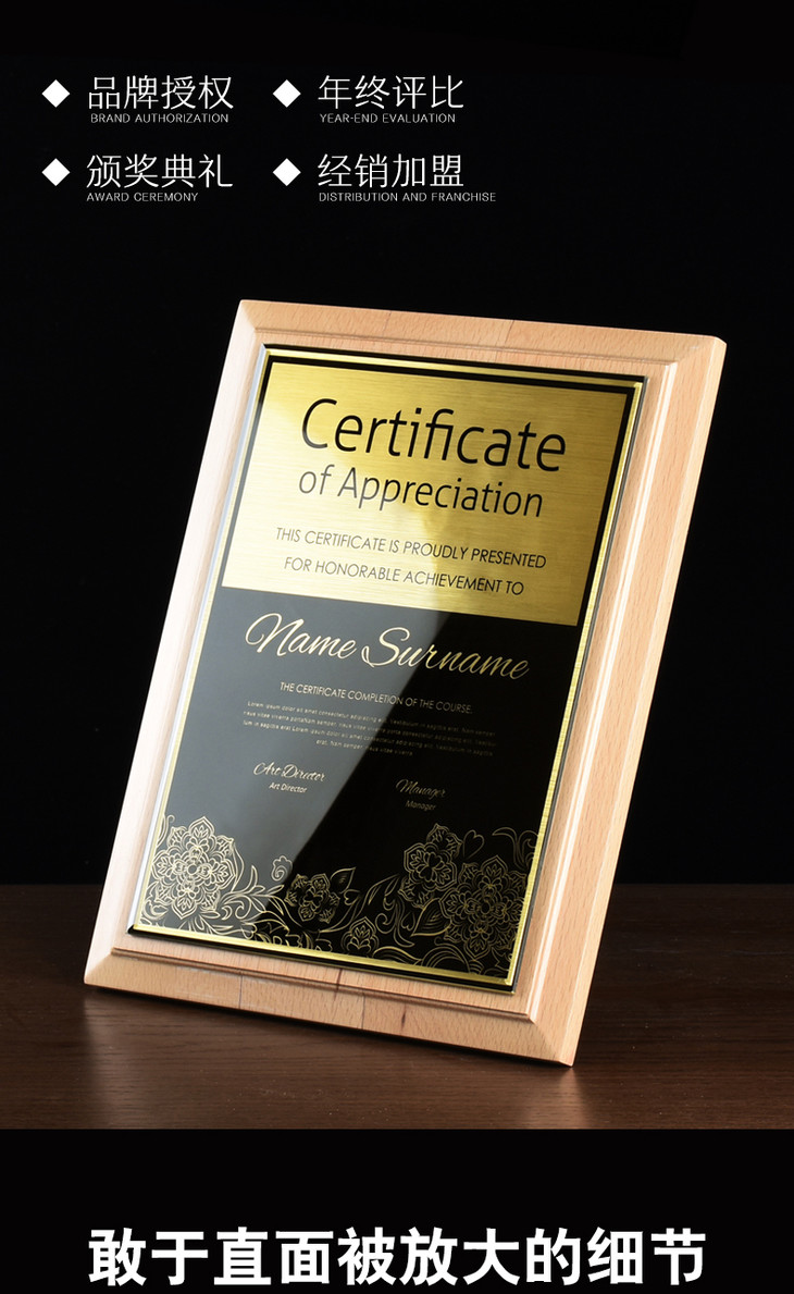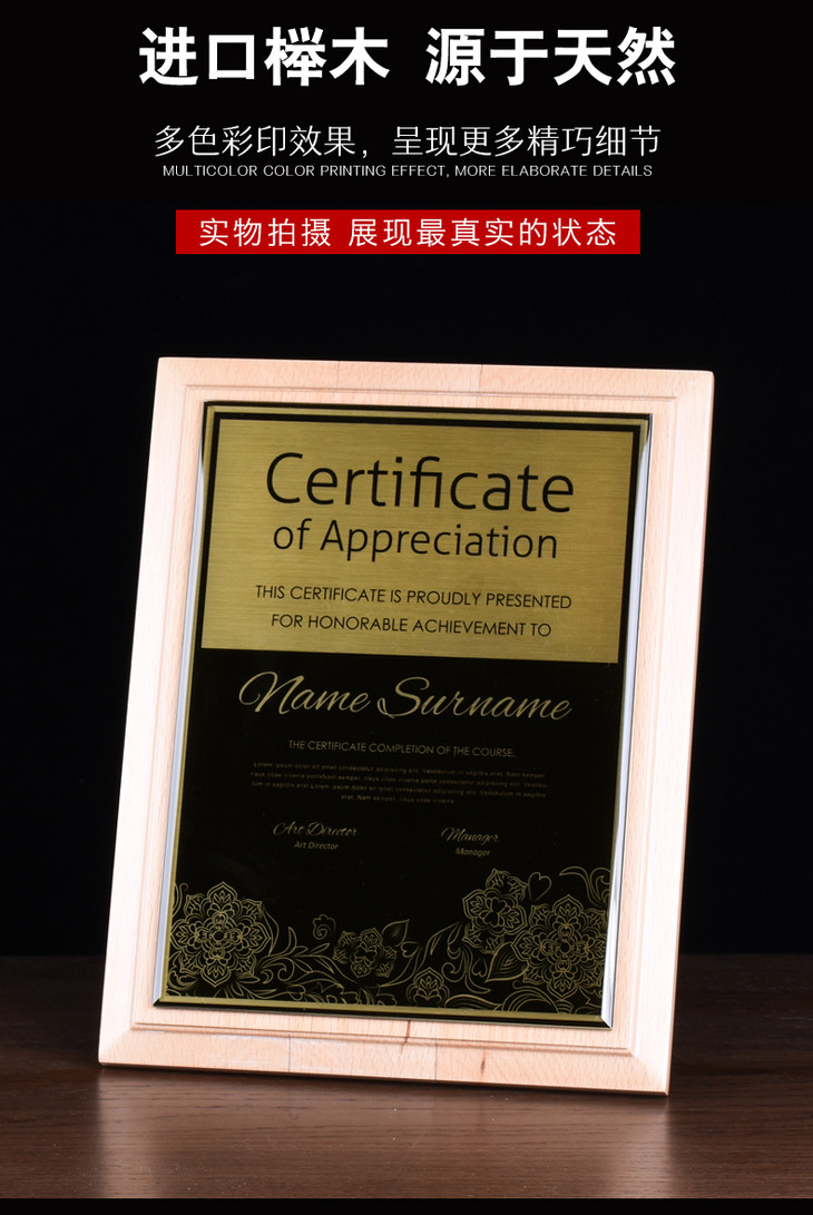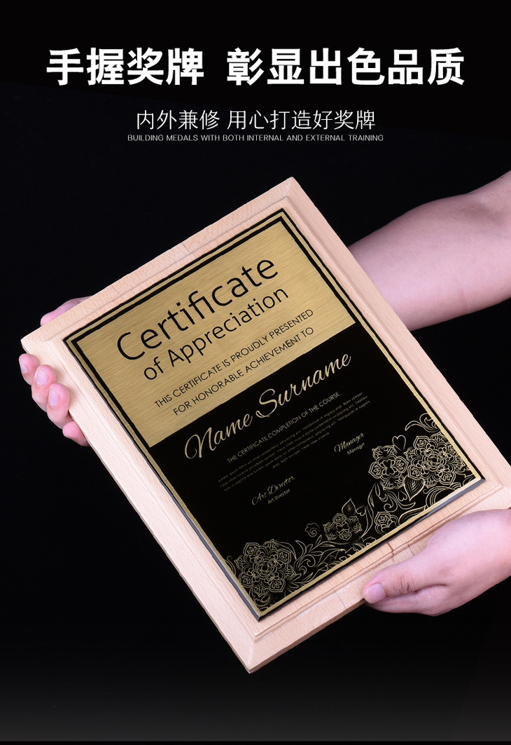 金箔奖牌 木质奖牌纪念牌 荣誉牌牌匾定制职称定制艺术类获奖证书