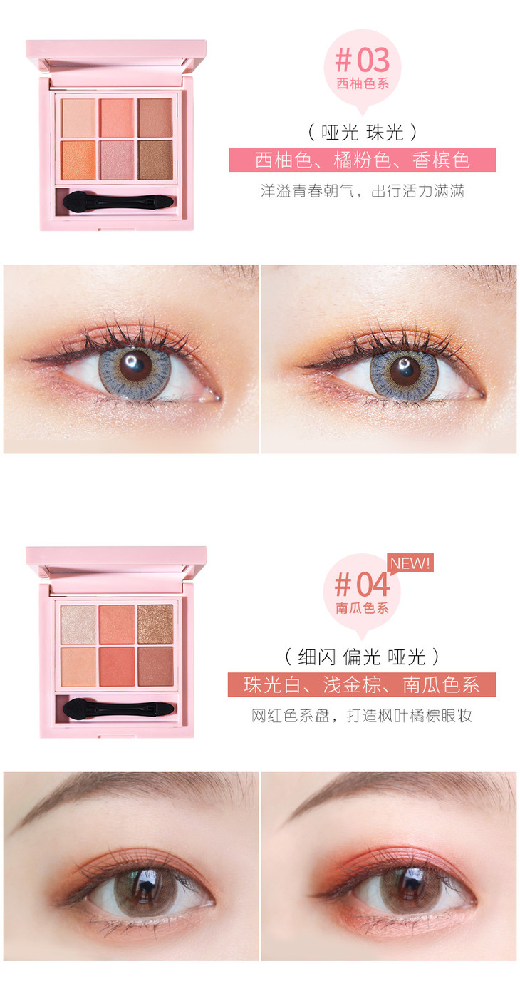 稚优泉六色眼影盘 大地酒红西柚南瓜色哑光珠光懒人少女系彩妆盘