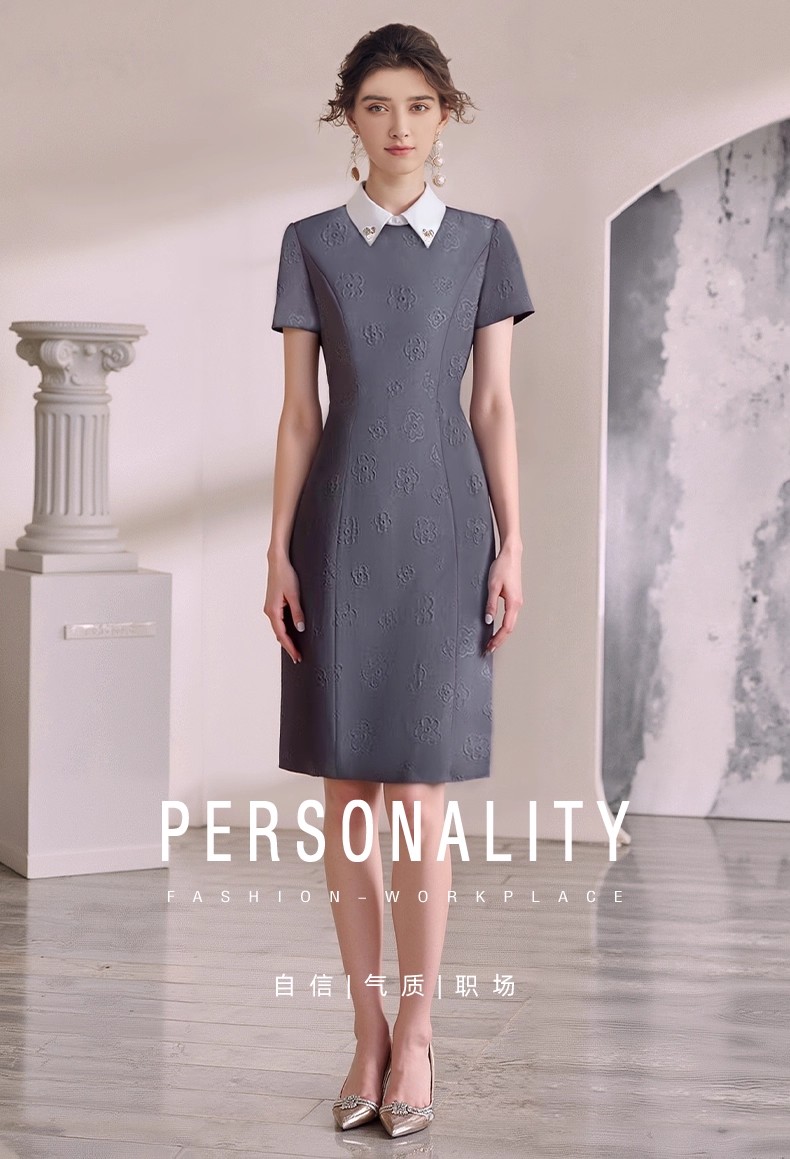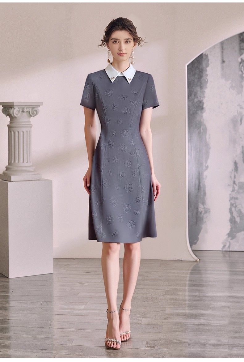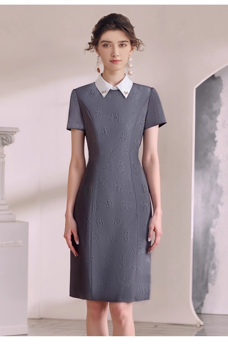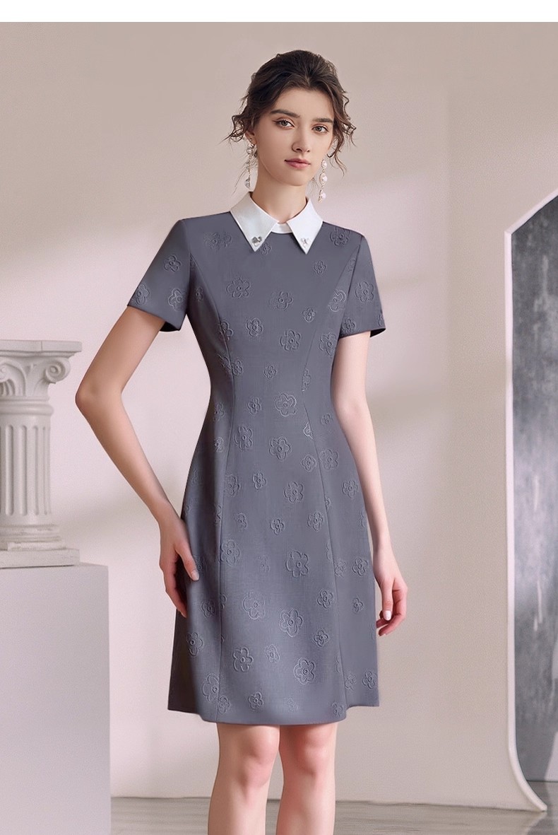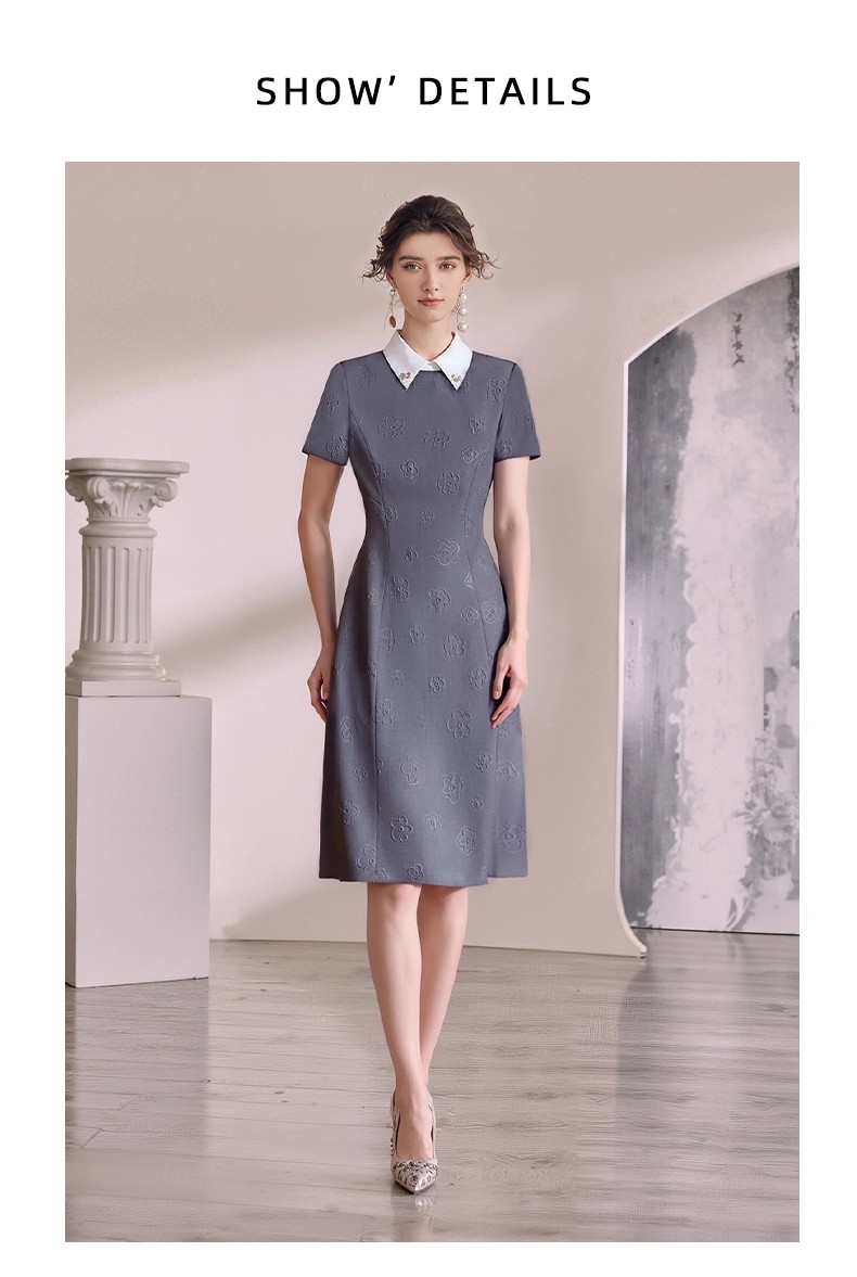 IWY/灰色名媛小香风连衣裙女轻奢高级感高端气质拓花裙子夏季新款Q1401