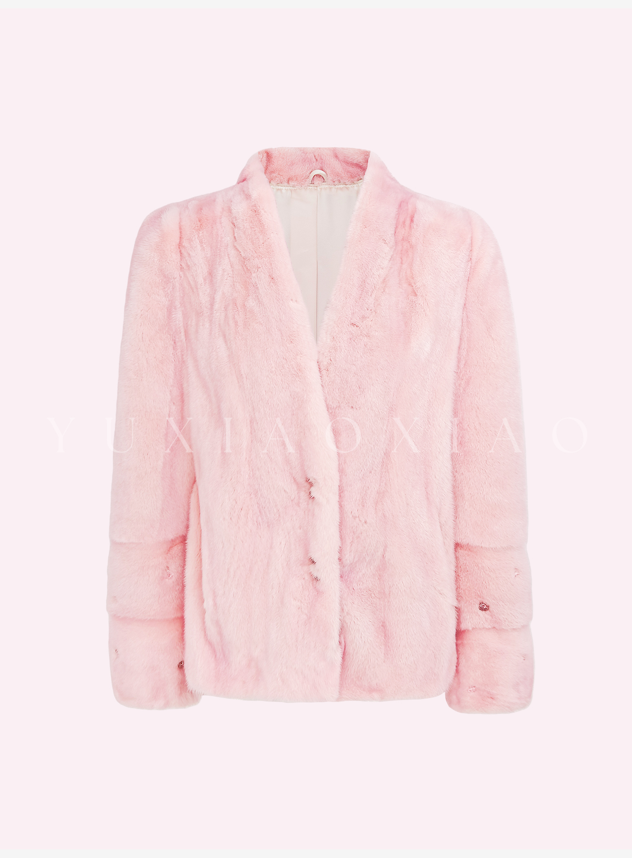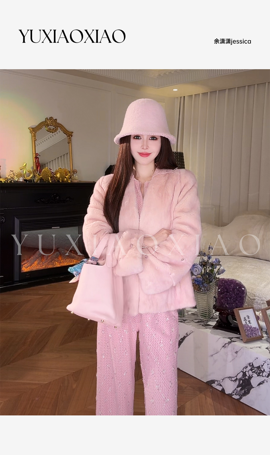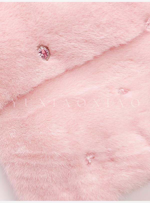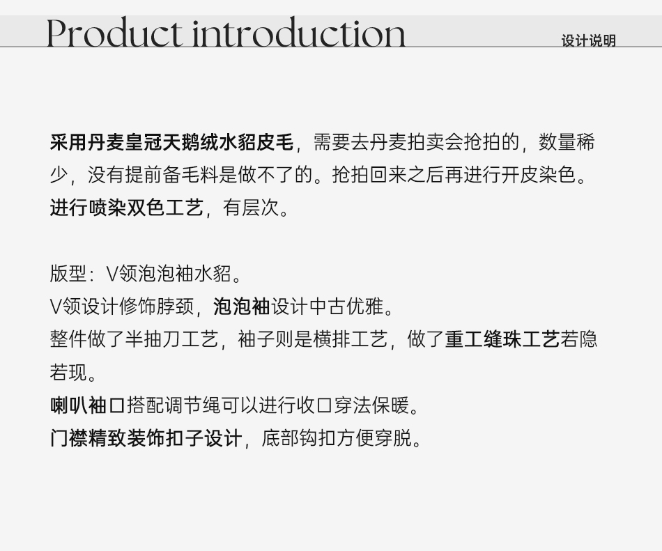 余潇潇【月光宝石】重工缝珠丹麦水貂真丝里布V领泡泡袖皮草外套