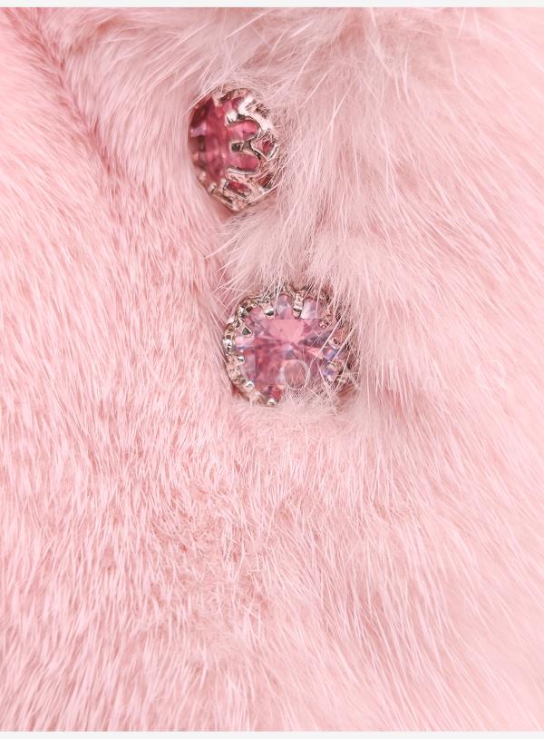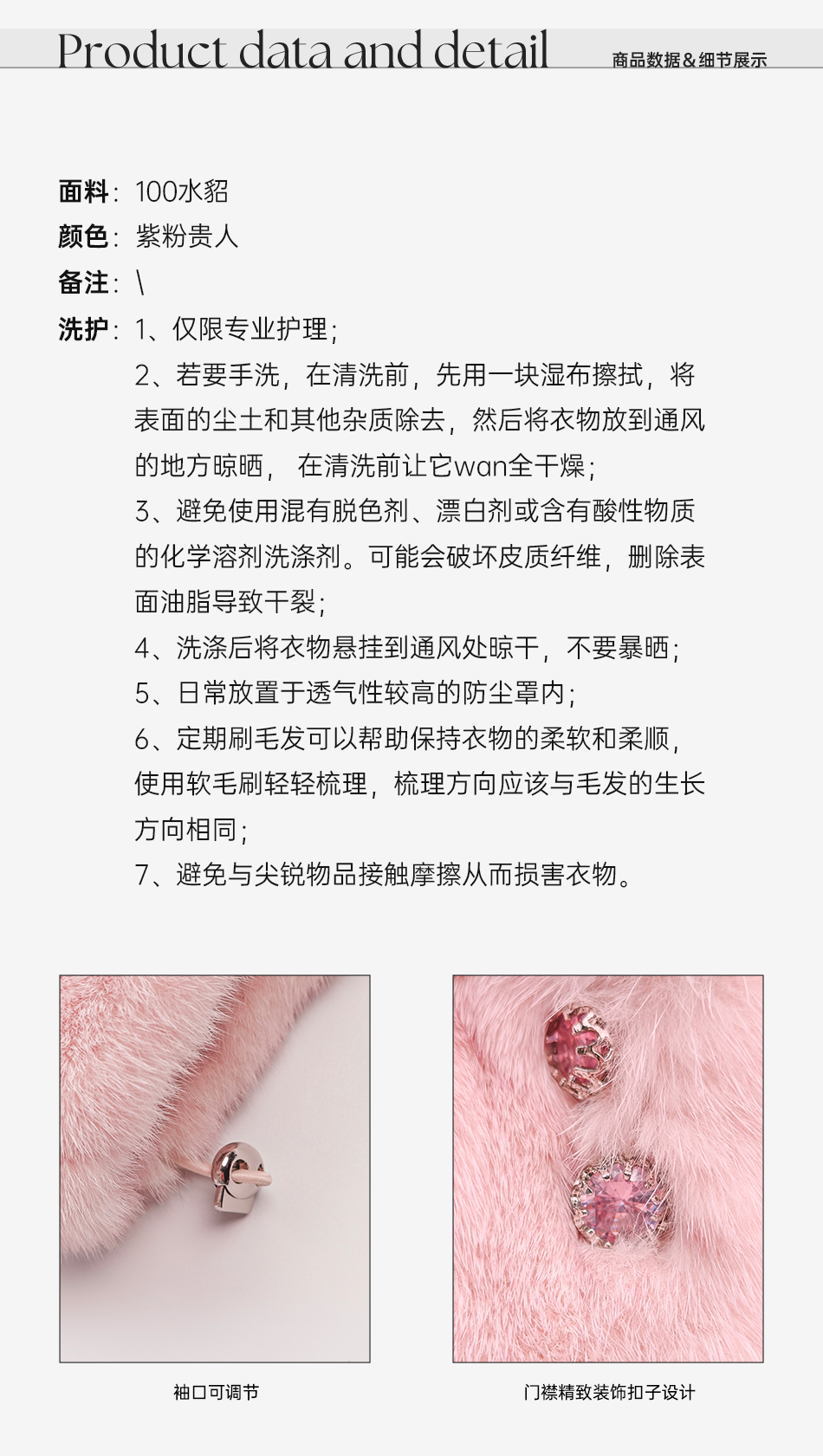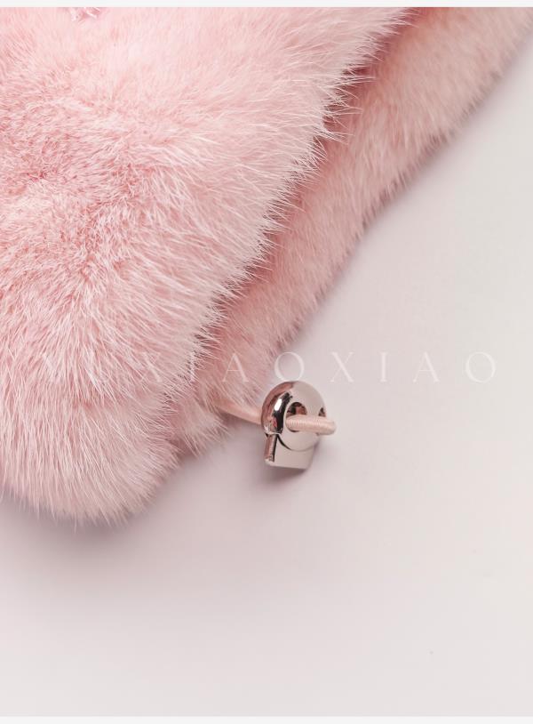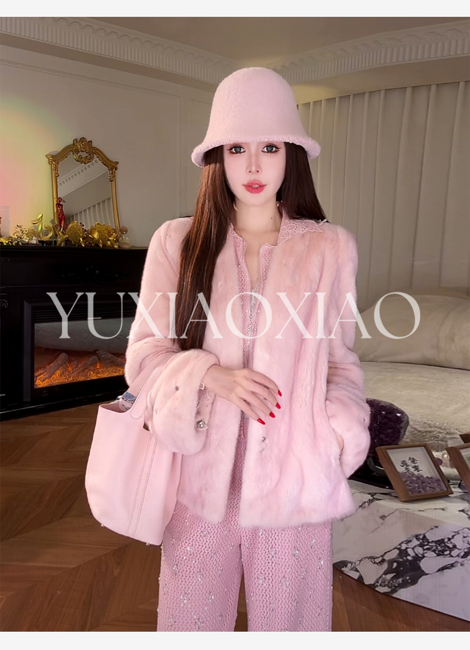 余潇潇【月光宝石】重工缝珠丹麦水貂真丝里布V领泡泡袖皮草外套