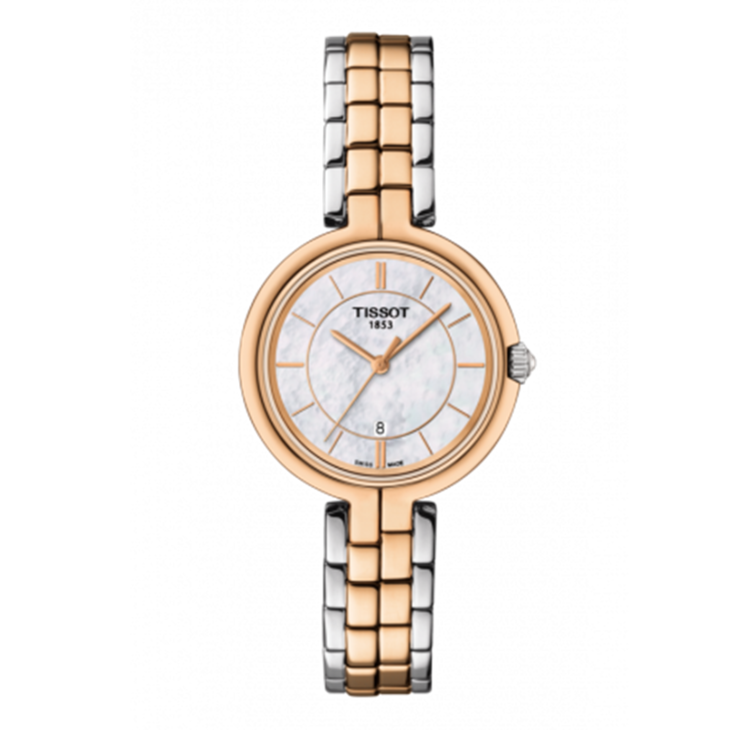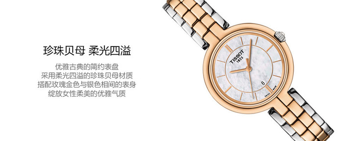 镜面 材质 | 蓝宝石水晶玻璃 | 表盘 | 精钢PVD镀玫瑰金表壳 白色珍珠贝母表盘 条字刻度时标 大三针 日期显示 |