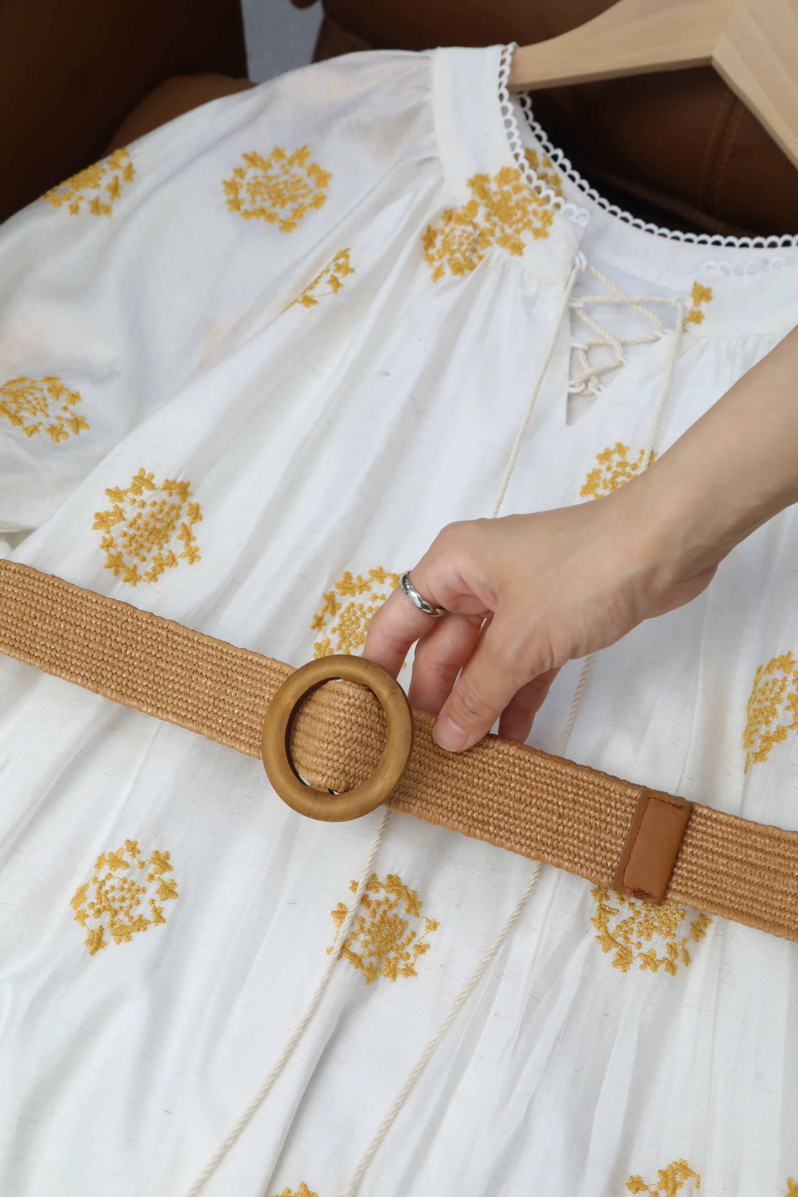 原工厂订单⚠️黄亦玫同款明媚感⚠️“繁花馥郁”黄玫瑰度假连衣裙❗️精致立体刺绣工艺❗️每单赠送腰带