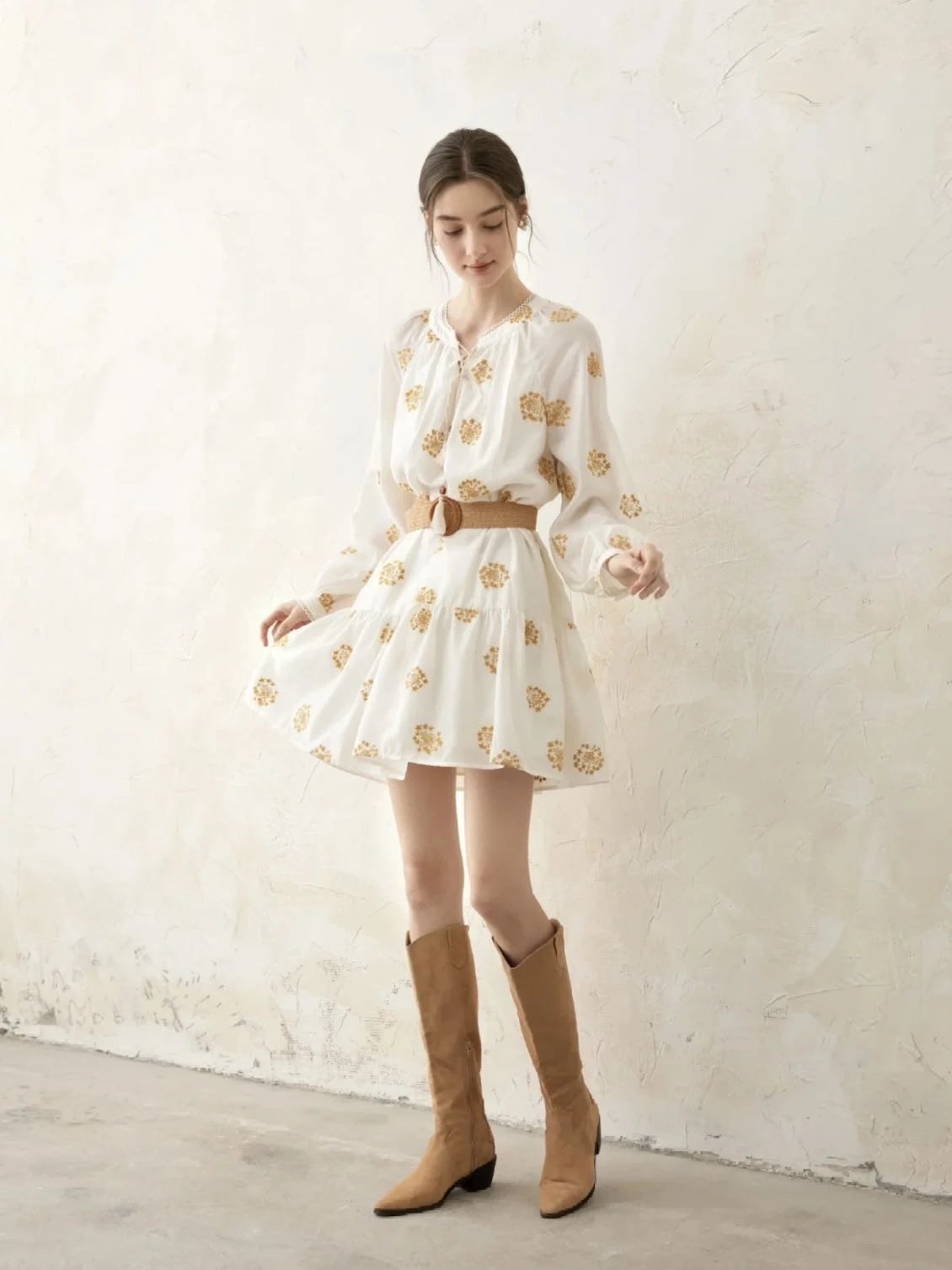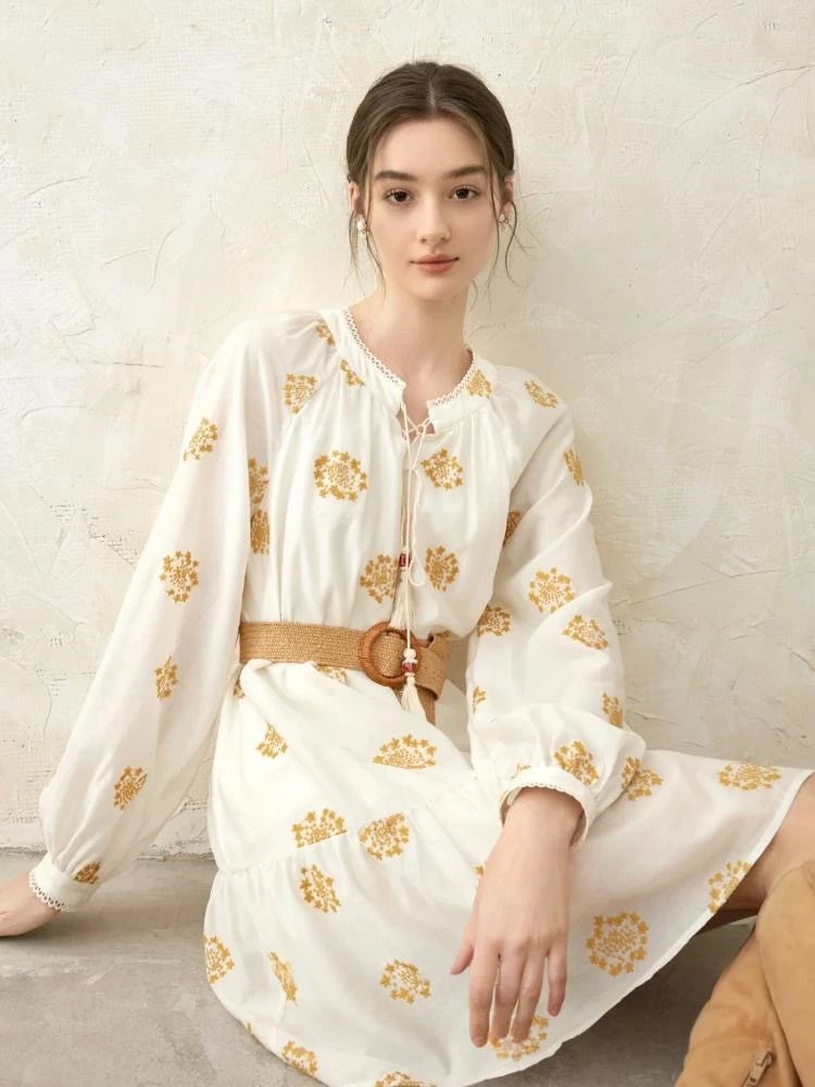 就是这条让我一眼万年的黄色重工刺绣连衣裙