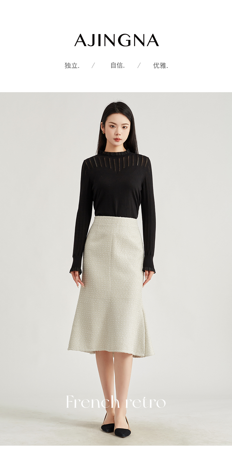 【积分兑换】阿菁娜2024冬季新品不对称鱼尾小香风半裙A28C113029
