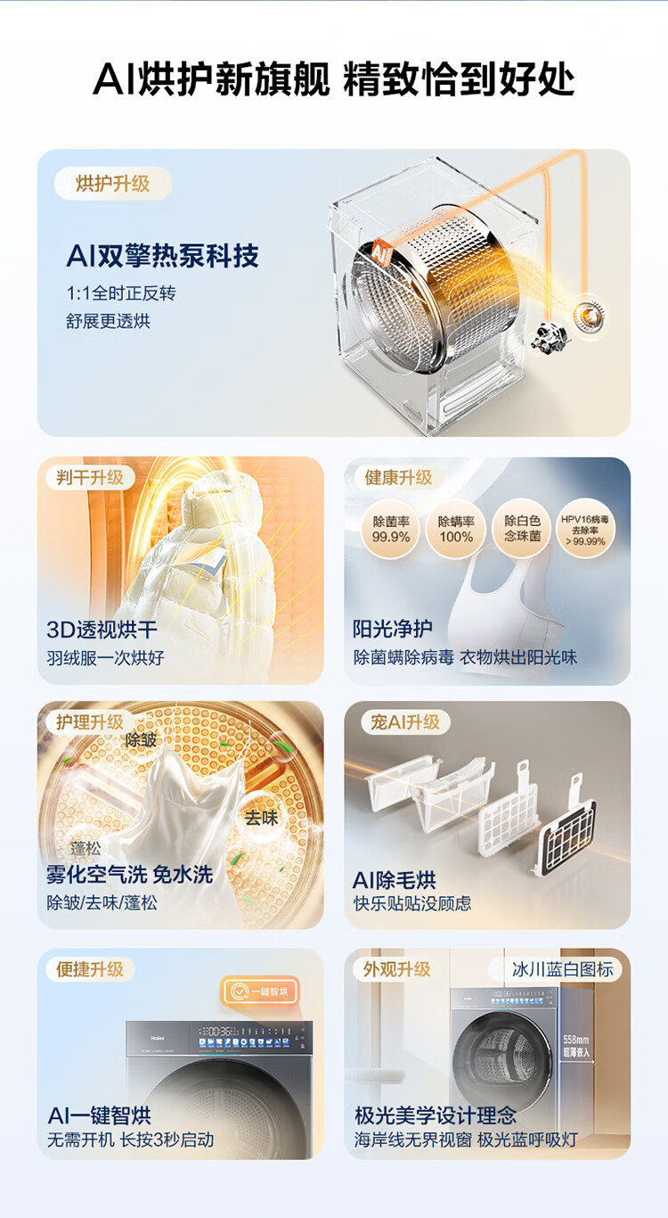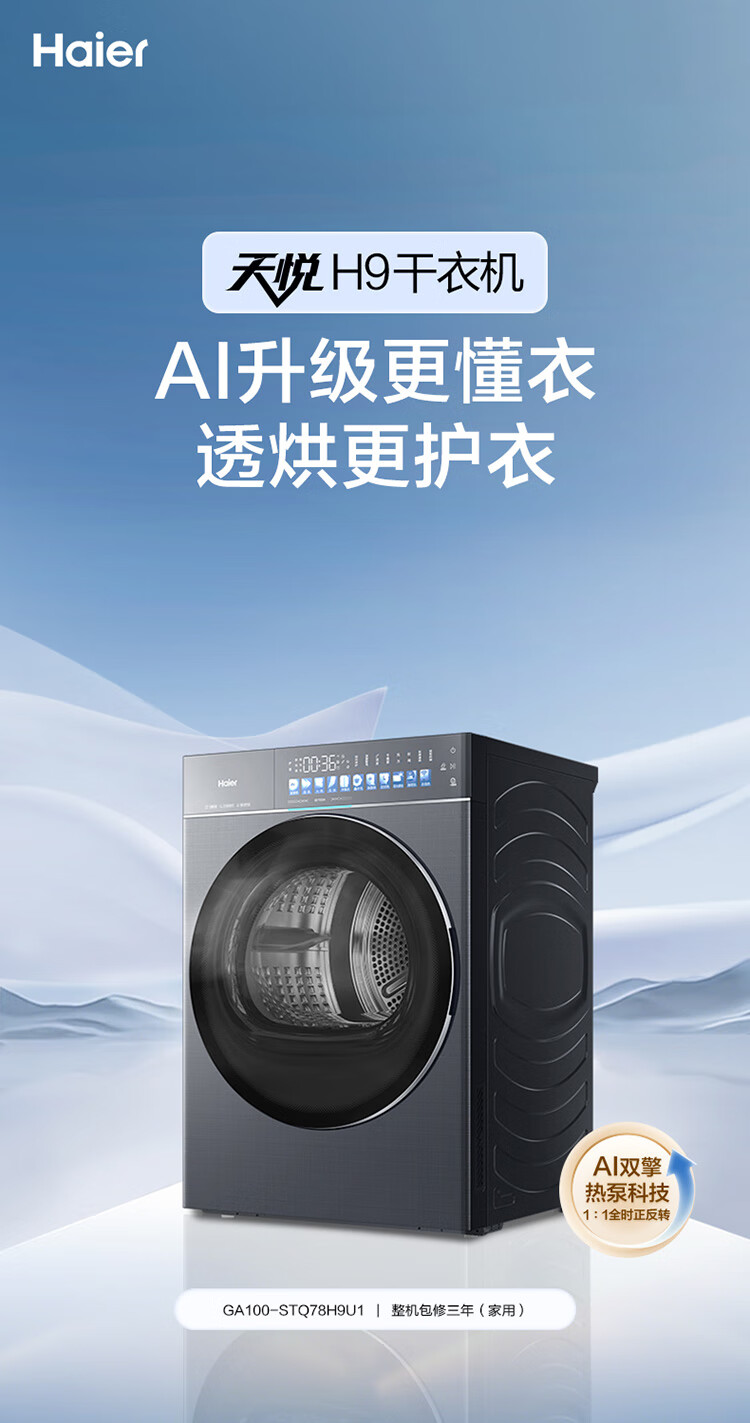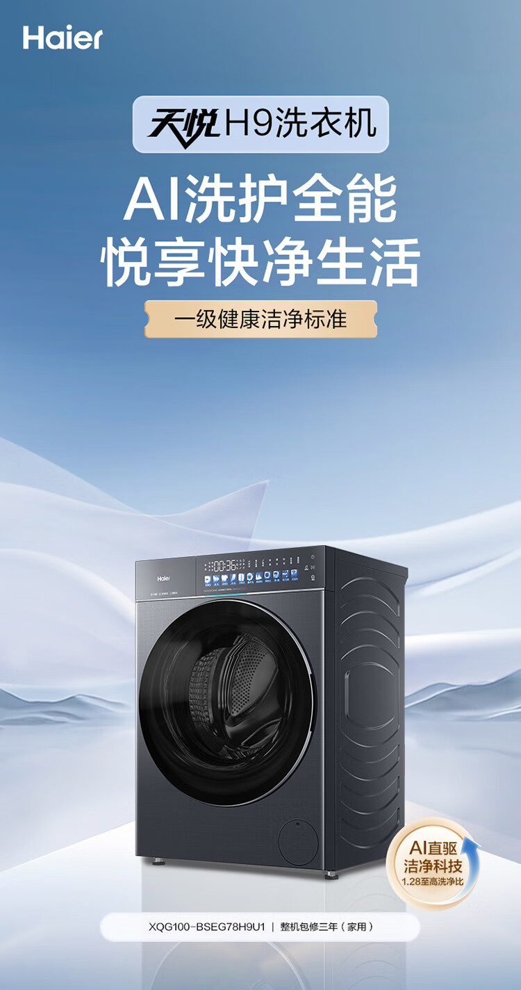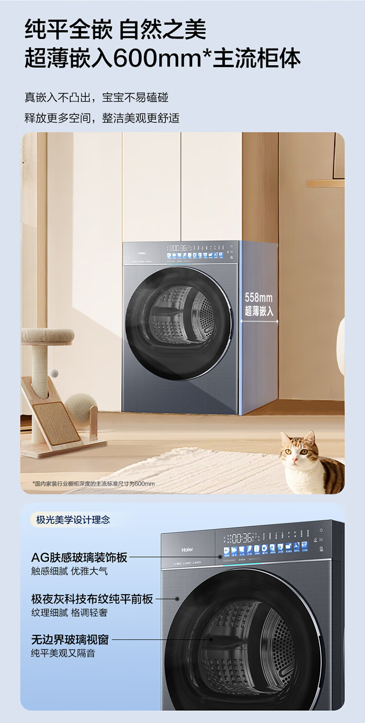 海尔 【天悦78H9套装】超薄平嵌直驱精华洗大容量540大筒径全自动双擎热泵洗干套 【78H9】直驱精华洗+超薄大筒径+双擎热泵XQG100-BSEG78H9U1+GA100-STQ78H9U1