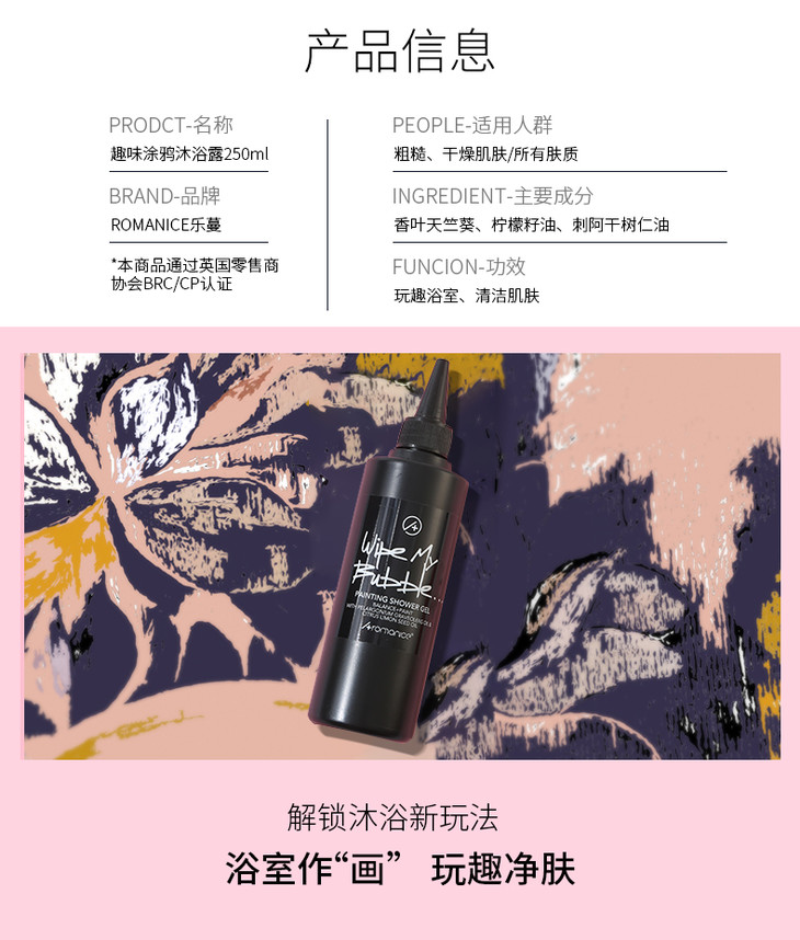 乐蔓 Aromanice夏季趣味身体浴室涂鸦沐浴露润肤沐浴乳洗澡持久留香晶莹透亮6928053436628