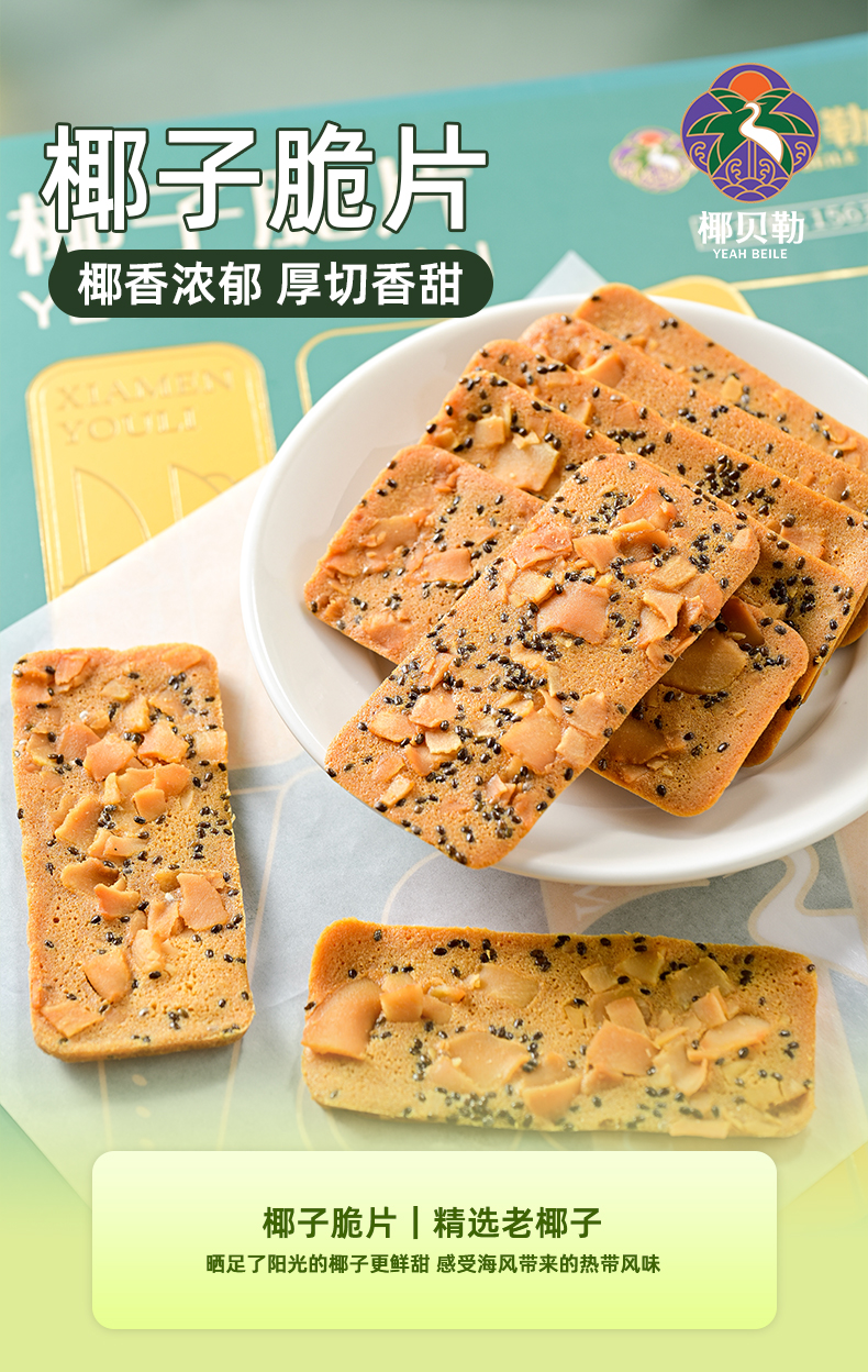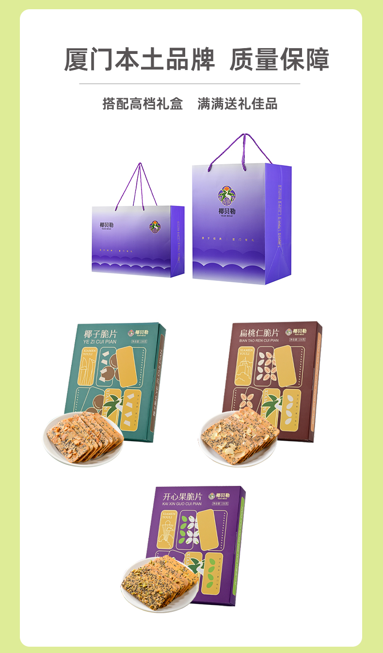 椰贝勒开心果扁桃仁椰子脆片坚果薄脆饼干节日礼物网红休闲零食