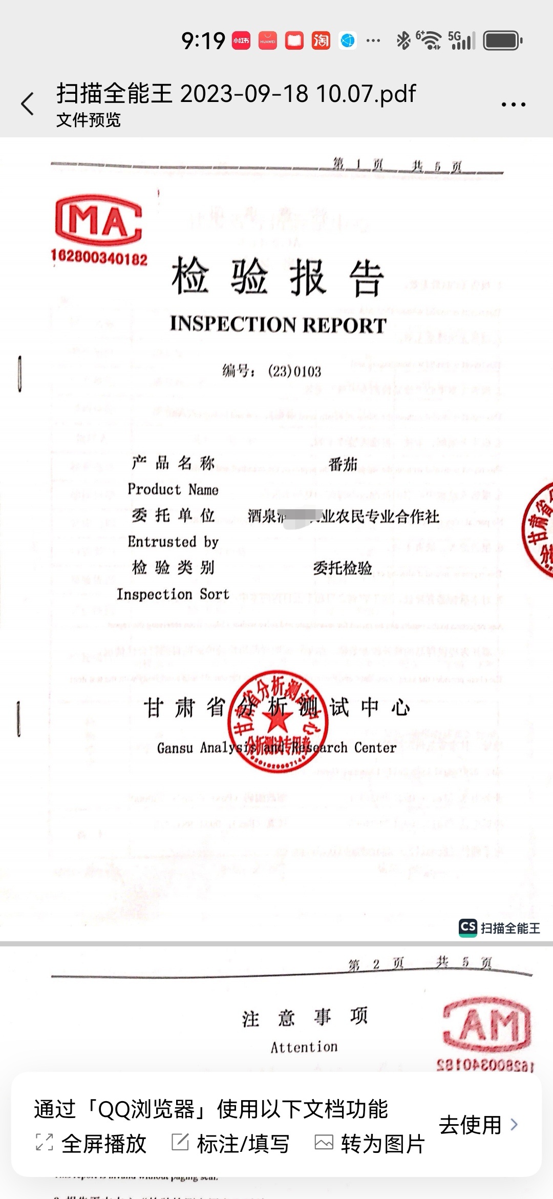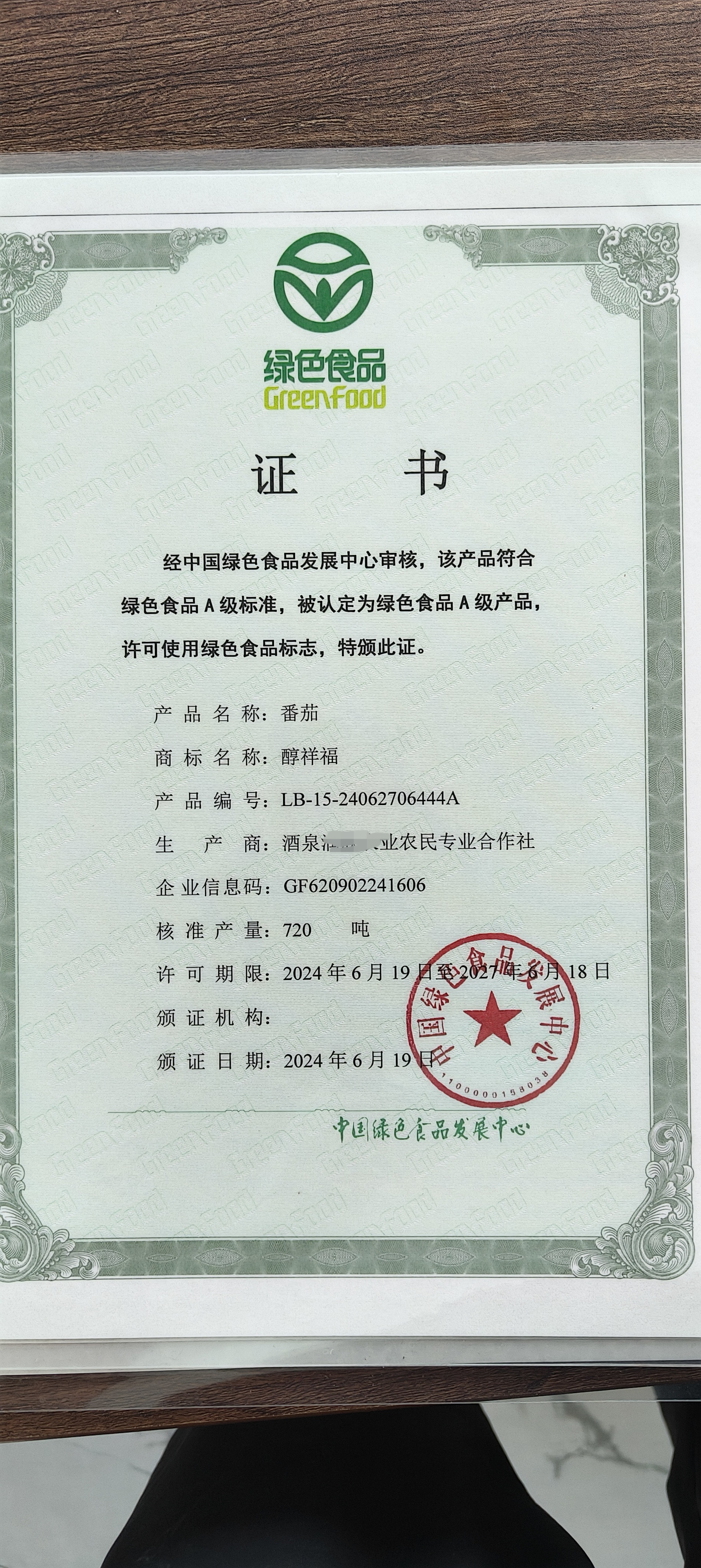 我们家的酒泉碱地西红柿还有🍀中国绿色食品证书!