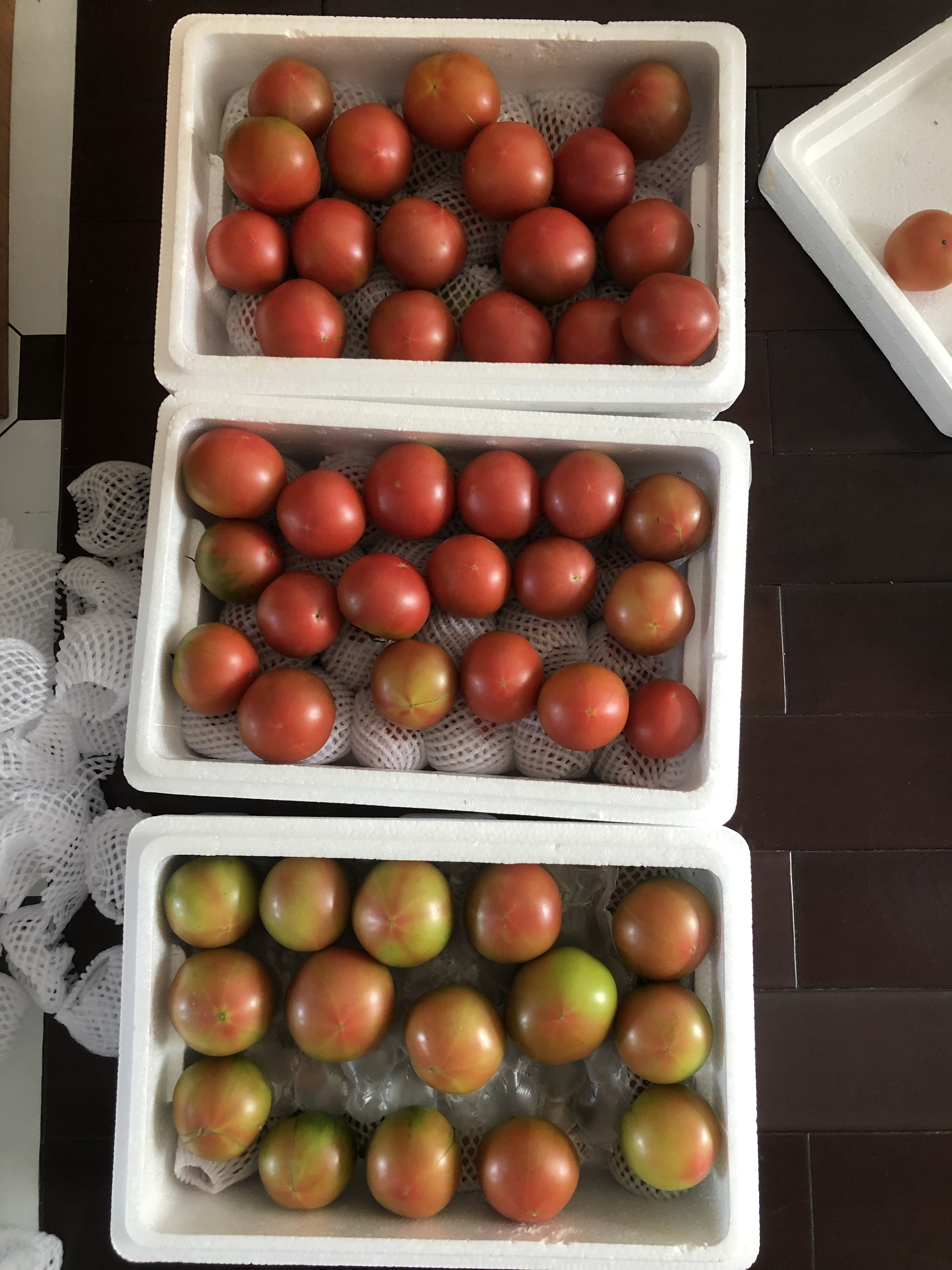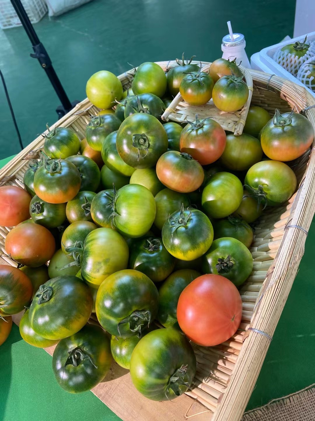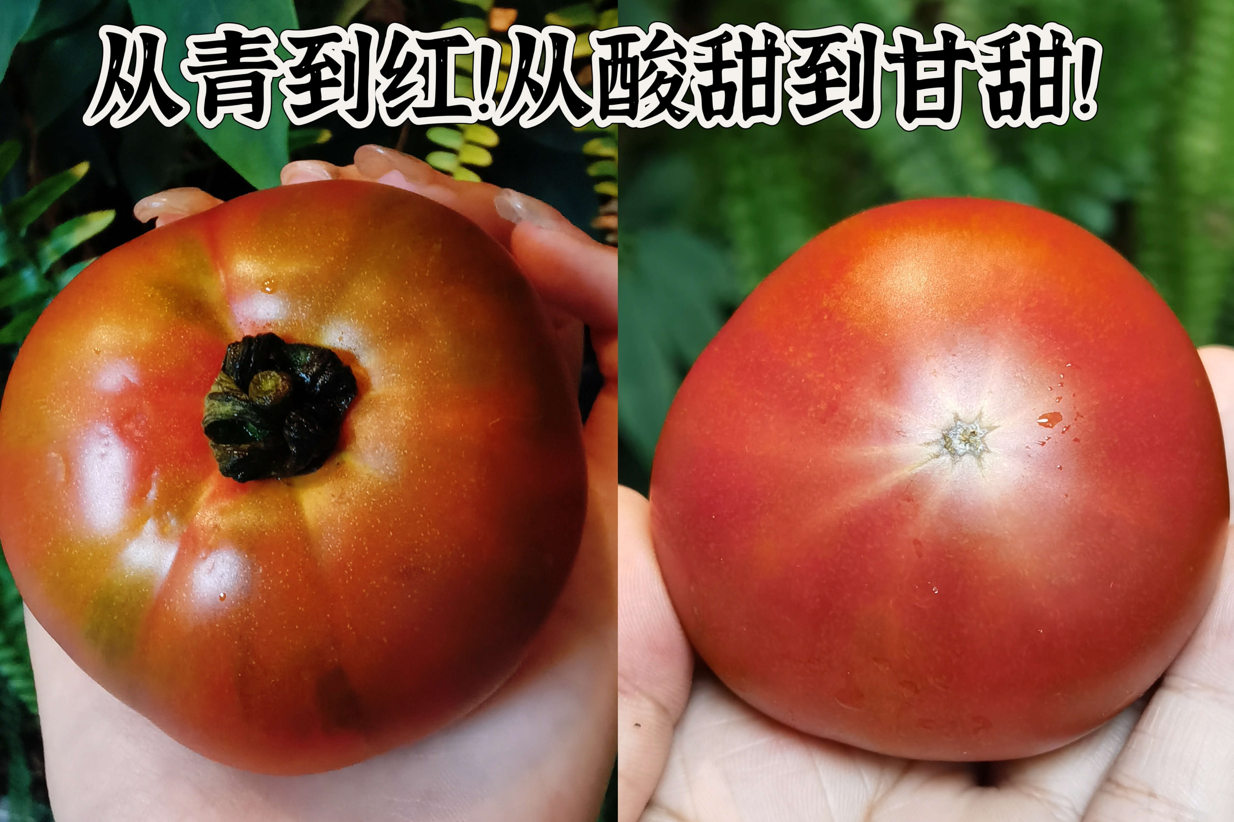 温馨提示~每个番茄生长时间不同,颜色也不太一样哦!绿果耐放,红果口感更佳当零食直接吃掉!