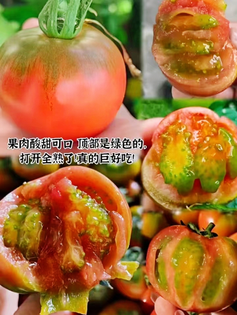 ✅绿色食品认证✅碱地种植,蜜蜂🐝授粉,自然成熟!✅清甜爆汁,肉厚多汁,俗称“番茄帝🏆”,可放3-5天,从青涩到甜蜜😋✅番茄味十分浓郁,甜大于酸!