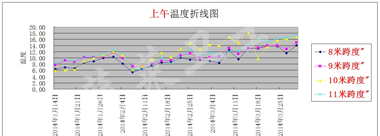 而通过对不同跨度非耕地日光温室在多点进行示范、并跟踪采集数据对比分析,跨度越大,温度越高,跨度8、9、10、11、13、16结构日光温室☀