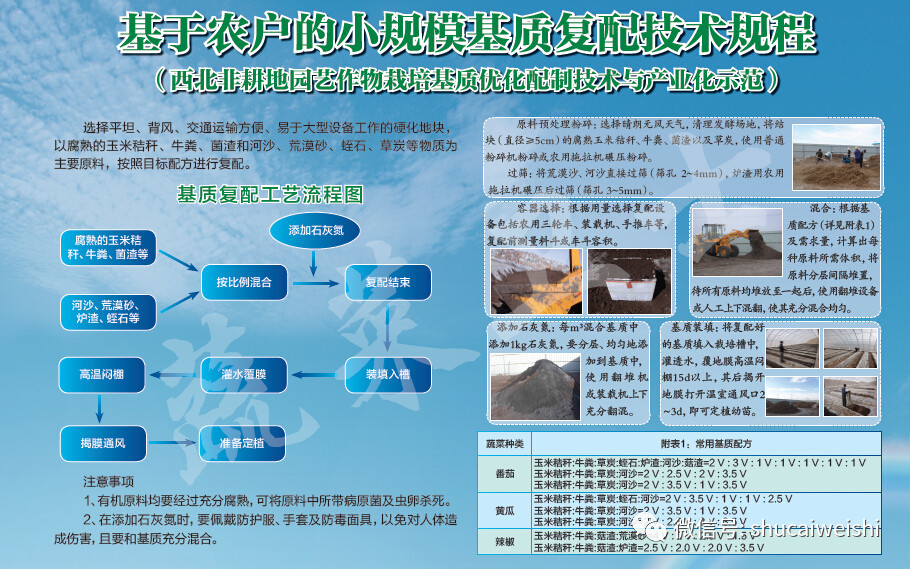 从2000年3月开始,酒泉技术研究单位,在中国农科院蔬菜花卉研究所的基础上,从可代替新型原料及肥源补充方面入手,充分考虑当地资源优势