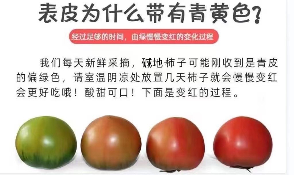 受盐碱地的影响,酒泉碱地柿子的果肉饱满,红绿相间,三日酸甜,七日甘甜,口感绝绝子。