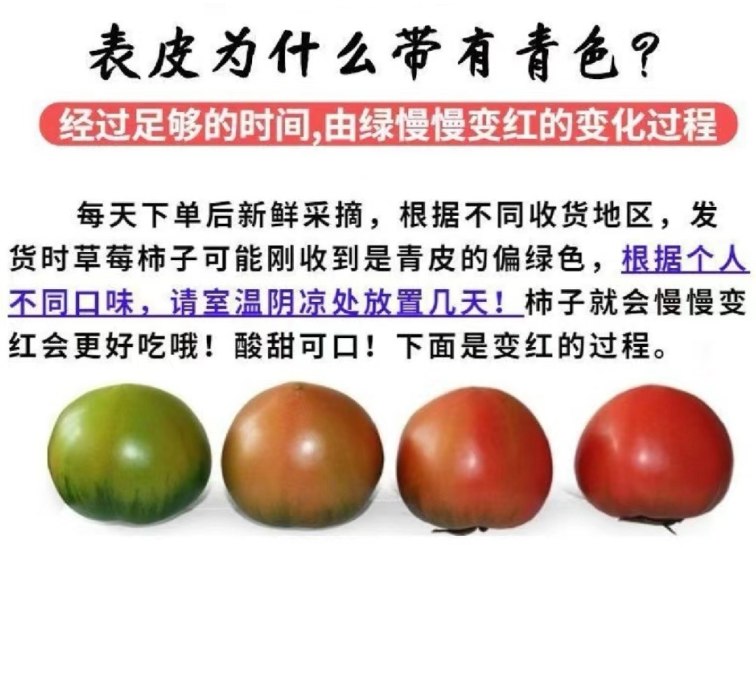 ⚠️温馨提示:由于西红柿生长在果园里,光照的位置不同,果子的颜色,外观也稍微不一样采摘3-7天,果实黄红相间,稍有绿果肩;酸甜适口。采摘8-10天,果实深粉色,绿果肩消失;口味甘甜。因此颜色不同不在售后范围之内。