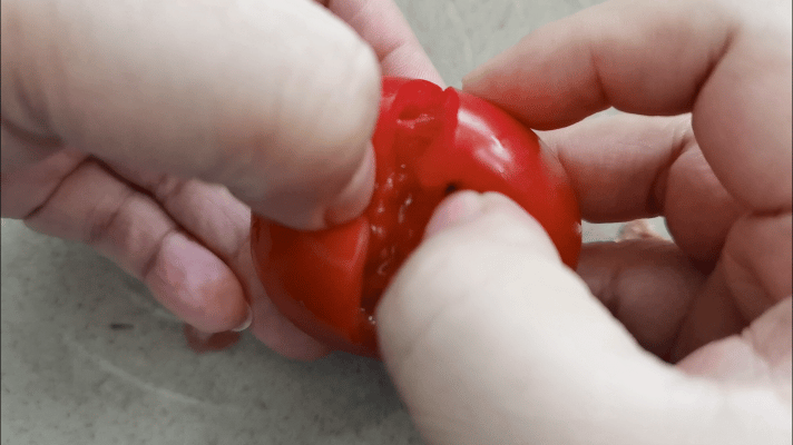 但一口咬下,意外的清甜,脆糯绵柔的果肉,清爽感十足,番茄的味道在口腔里爆发,这是什么神仙水果番茄啊!