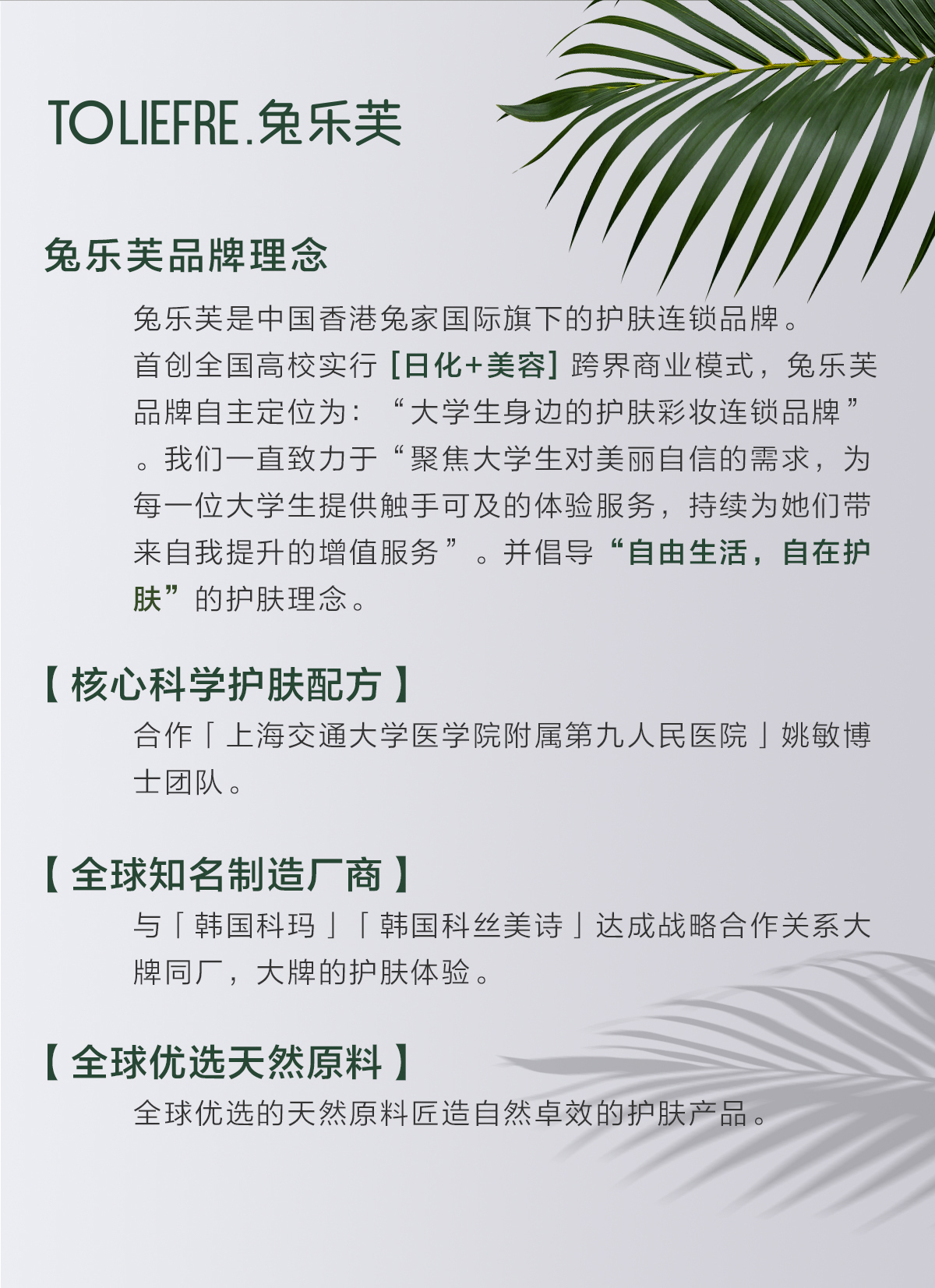 - 兔乐芙[To lifre],是一个主张释放年轻肌肤,释放青春力量的自然元素护肤品牌。我们致力于研发与集合全球,最畅意青春的护肤及美妆产品,助力每一位年轻人,释放青春的肌肤力量。