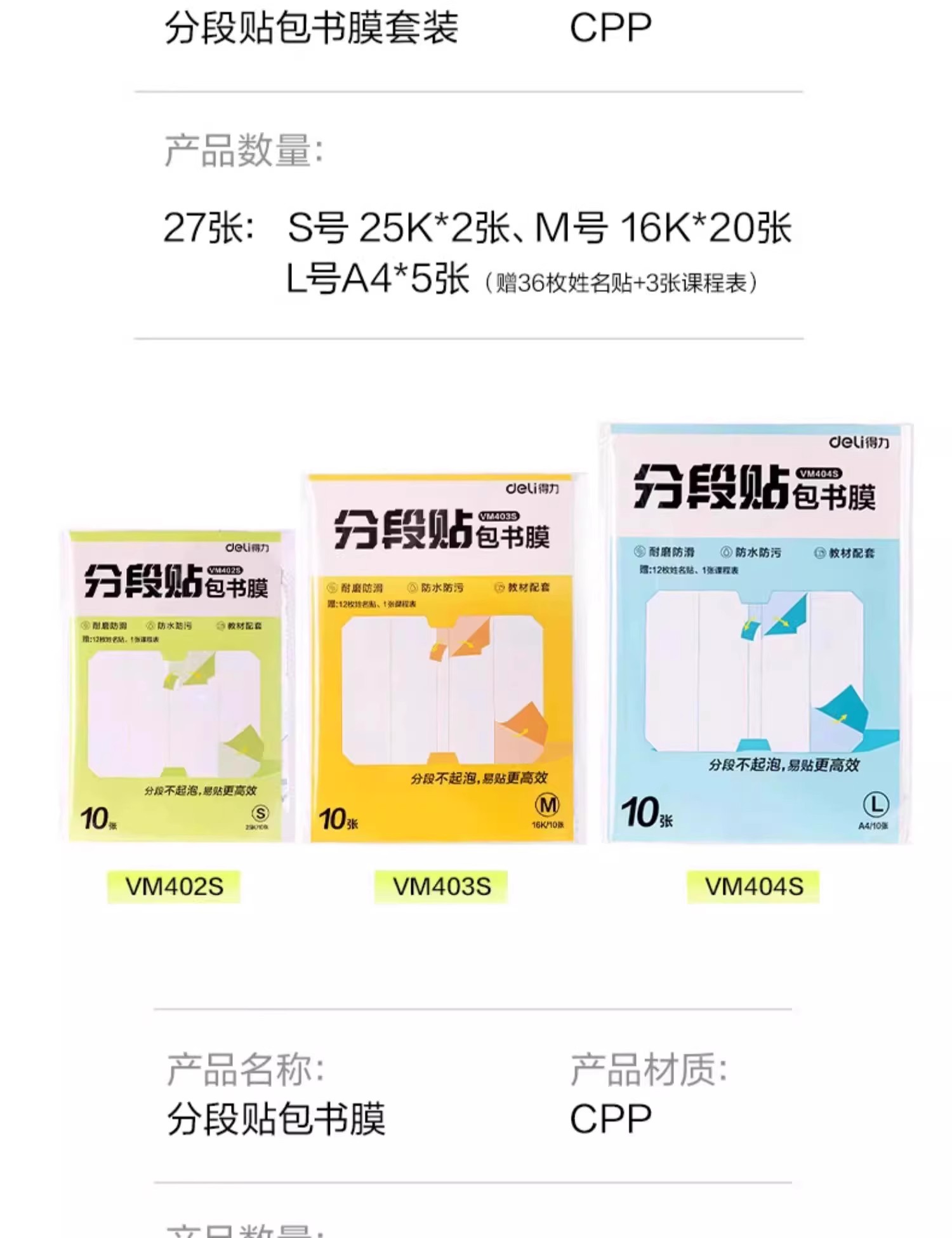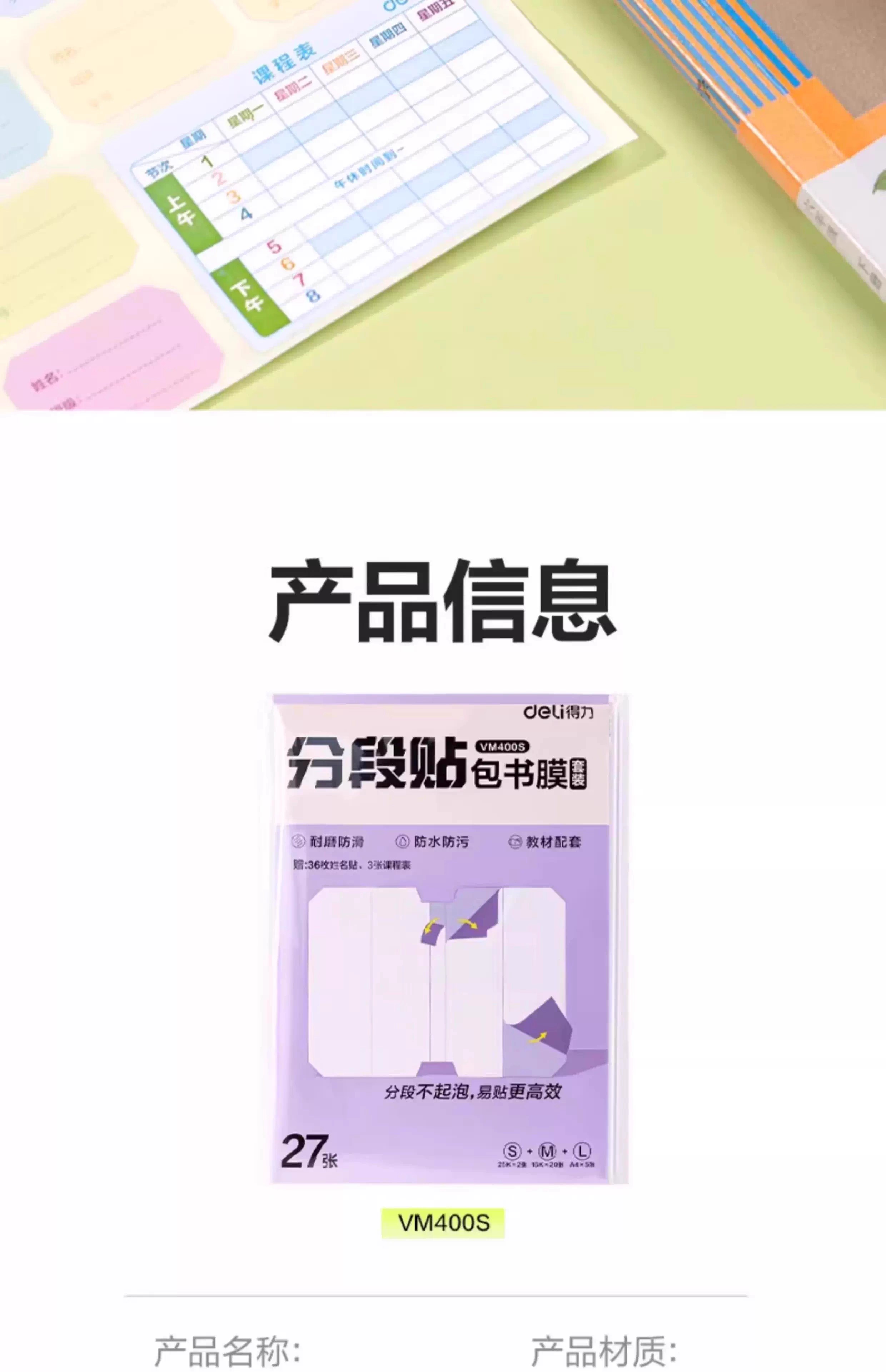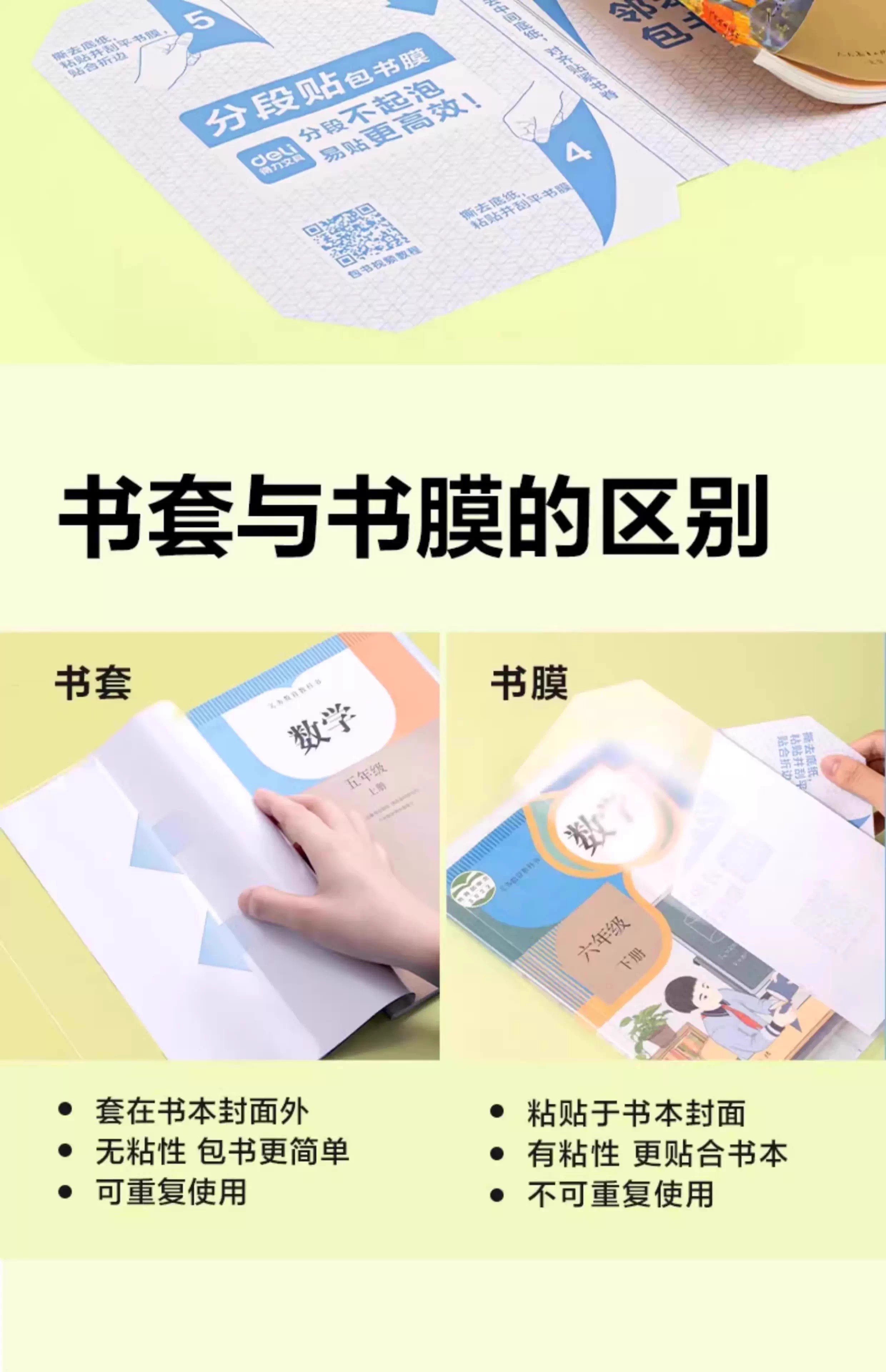 得力分段式包书皮书套包书膜书皮纸自粘透明磨砂加厚小学生
