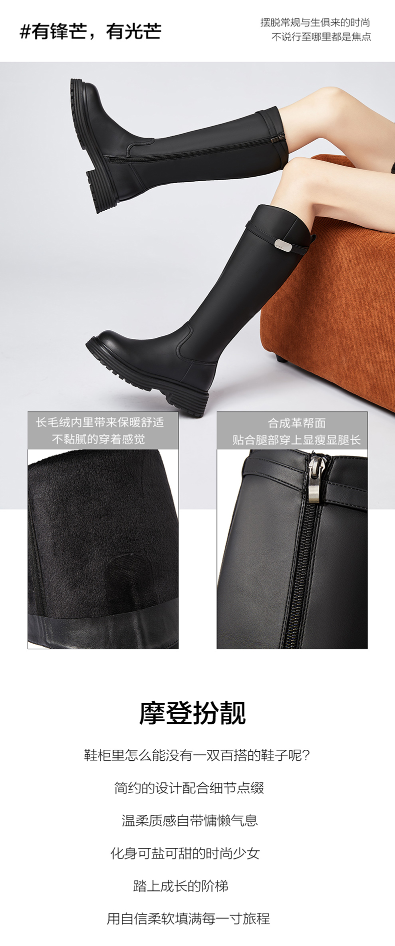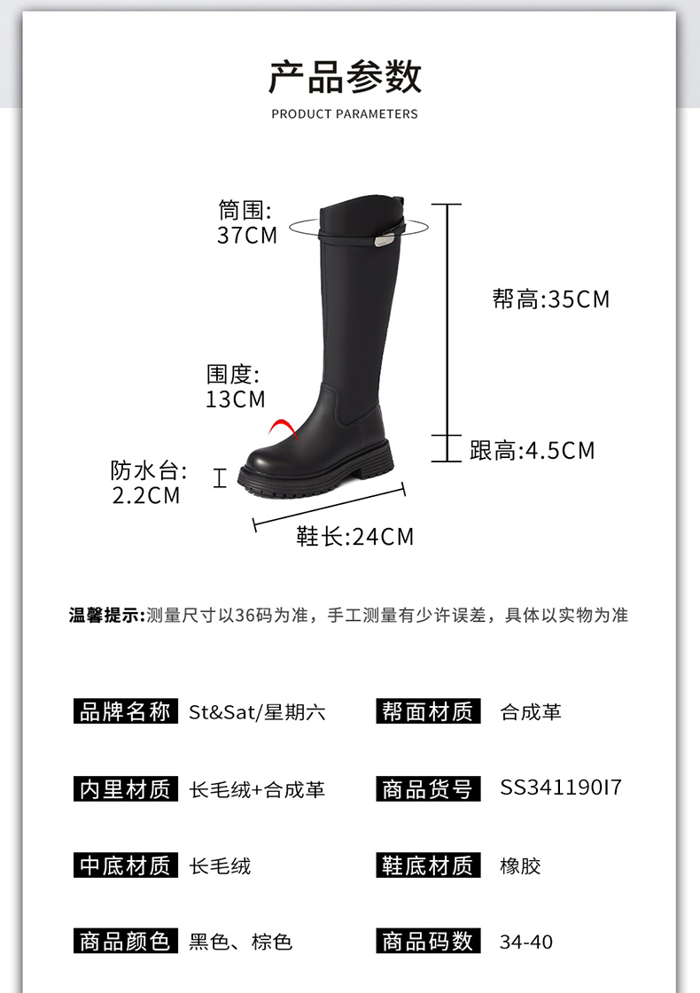 星期六时尚百搭美腿显瘦保暖绒里骑士靴SS341190I7