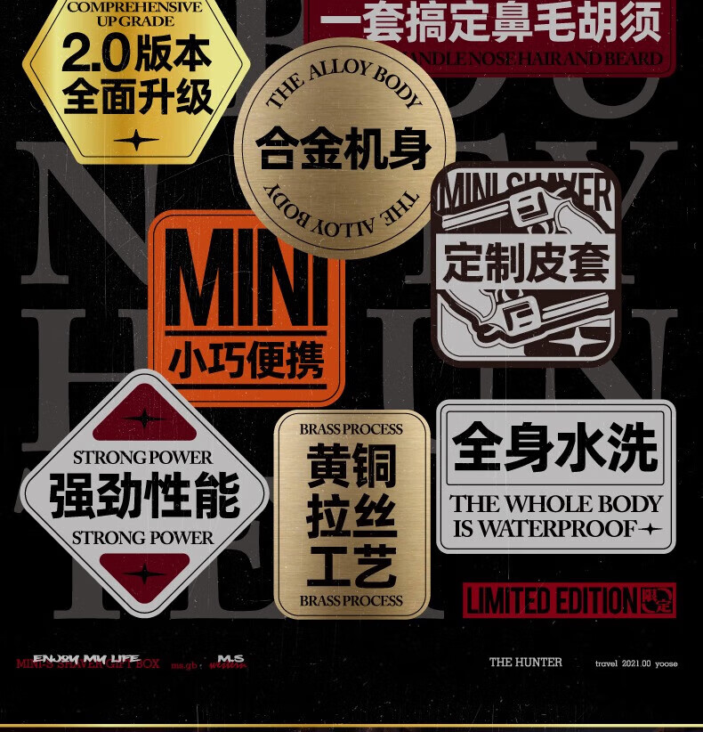 YOOSE/有色 赏金猎人限定理容套装 剃须刀便携式刮胡刀鼻毛修剪器二合一全身防水送男友生日礼物