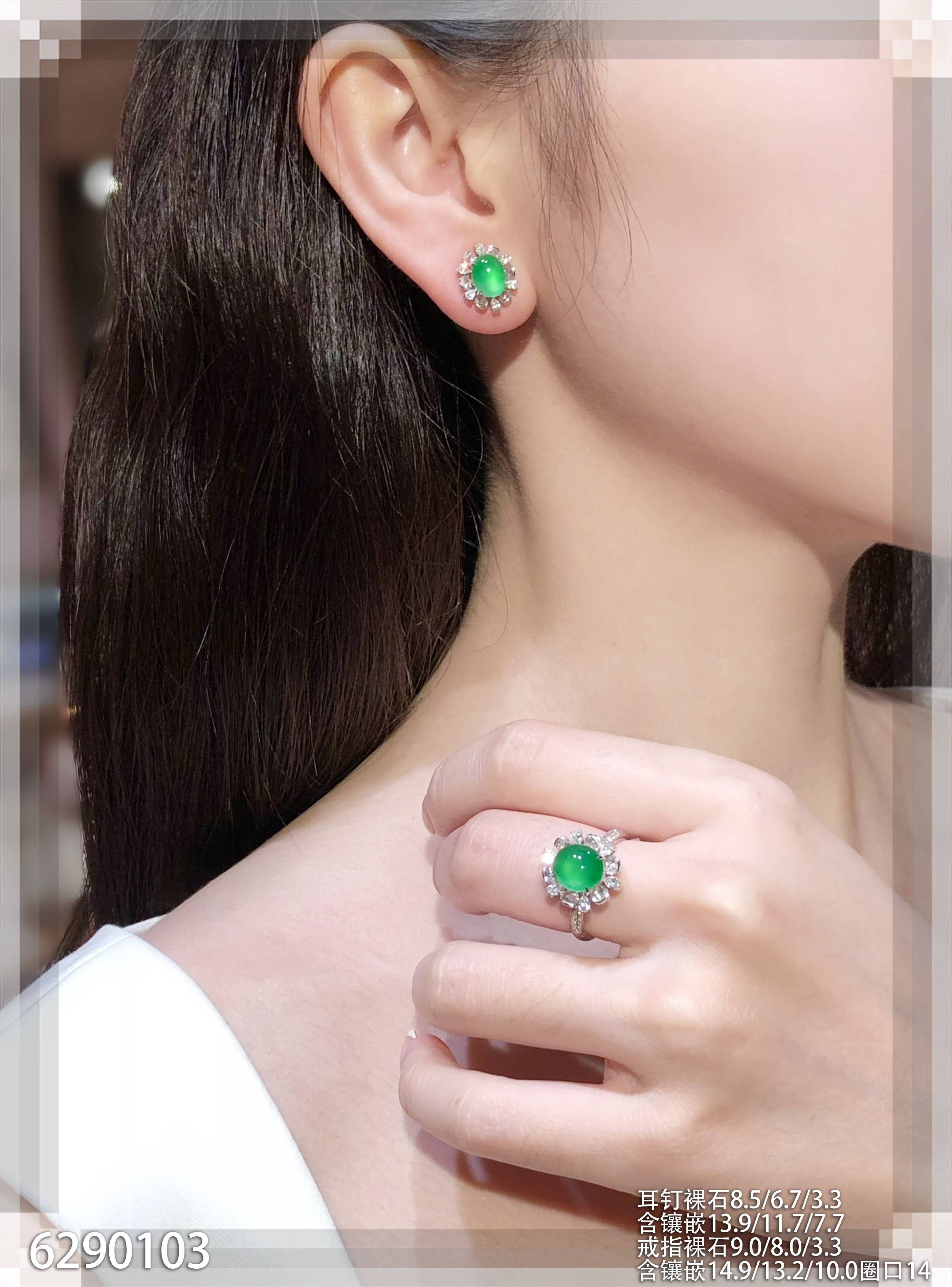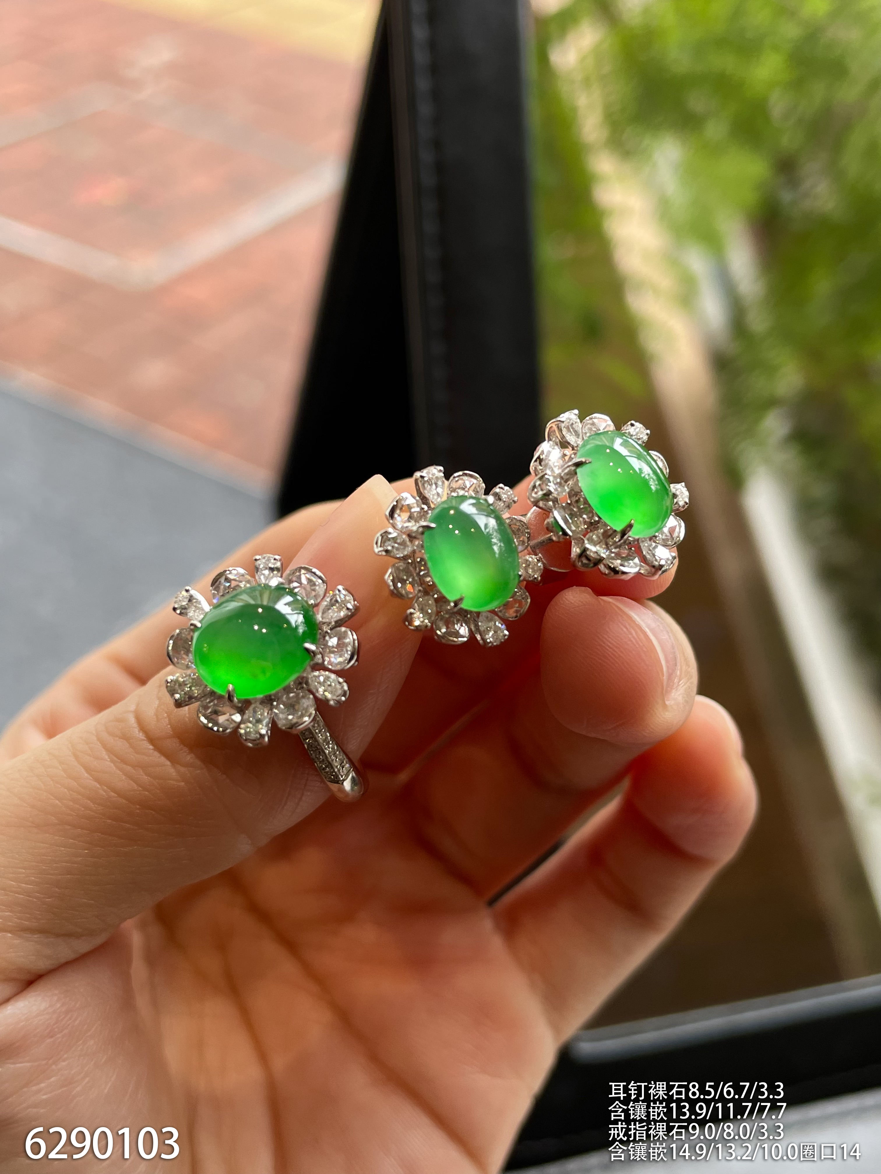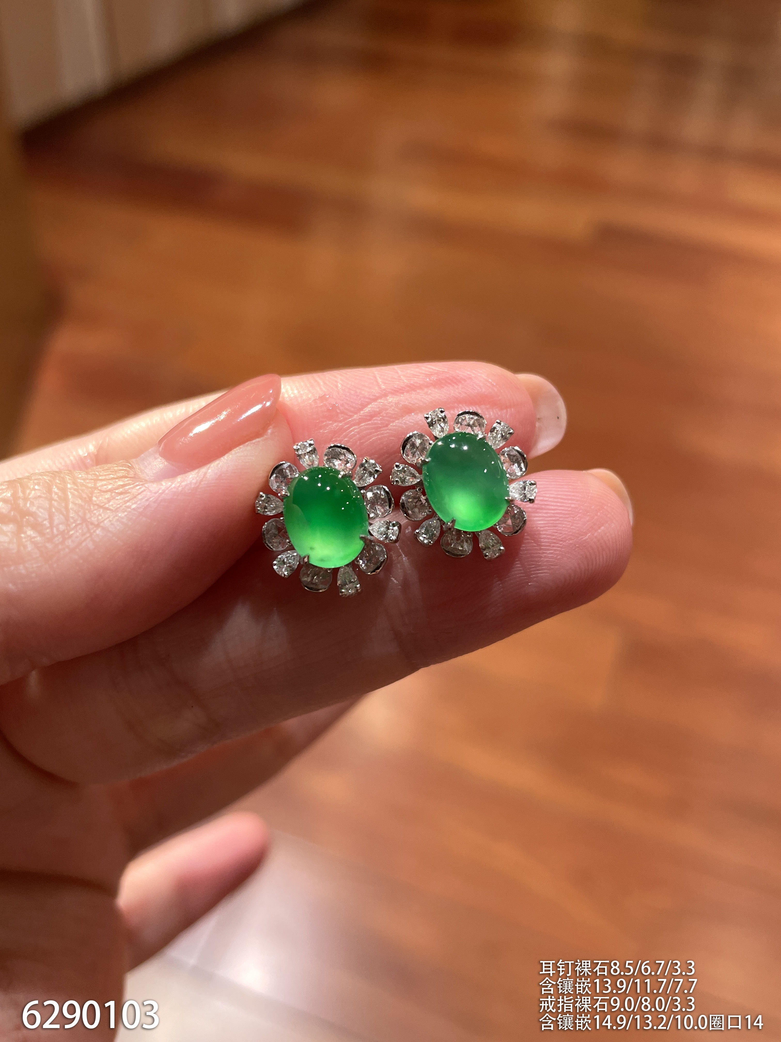 玻璃种帝王绿蛋面耳坠【6023104】具体价格微信咨询