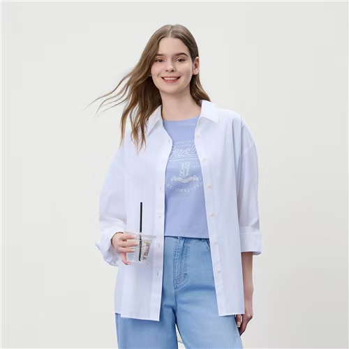 佐丹奴女装26年新款全棉府绸宽松剪裁衬衫时没尚小外套05346012
