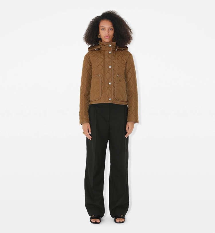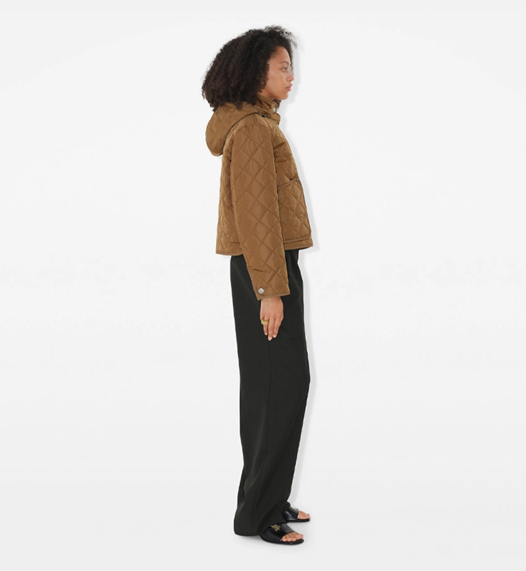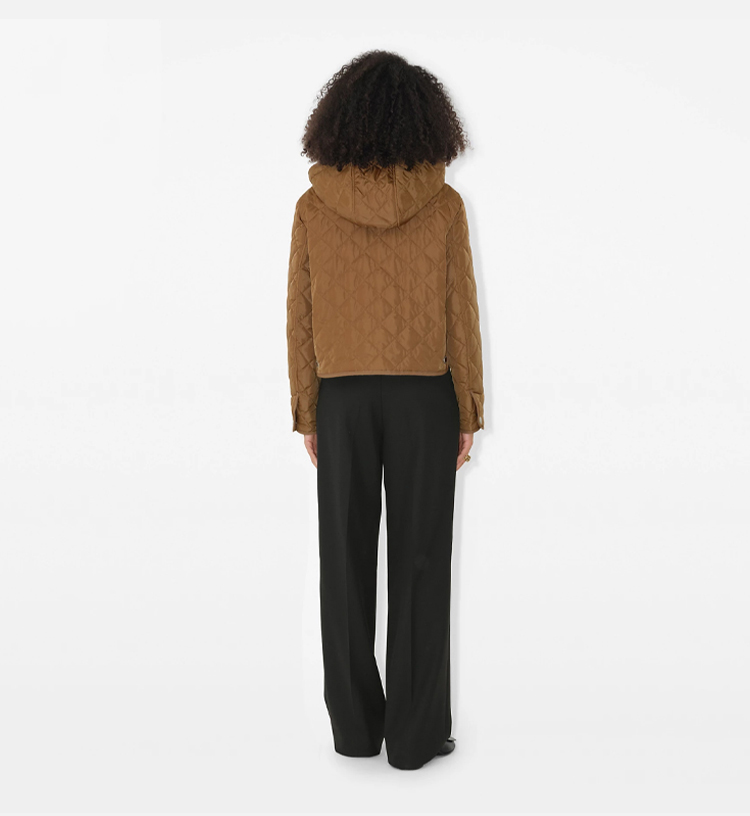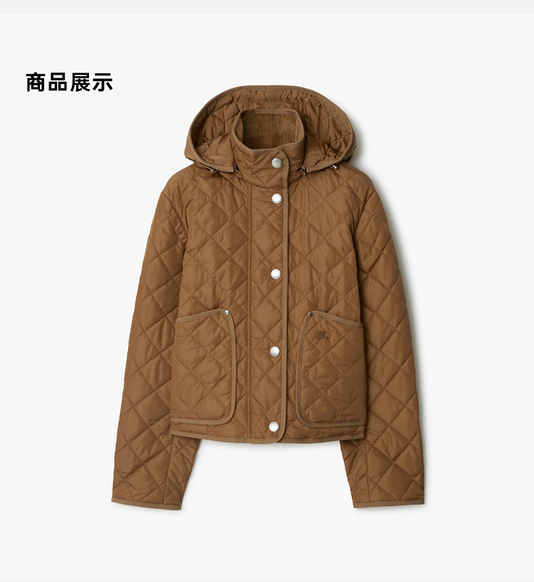 BURBERRY 巴宝莉 女士及腰短款绗缝尼龙连帽棉服 棕色 8077663 A8739