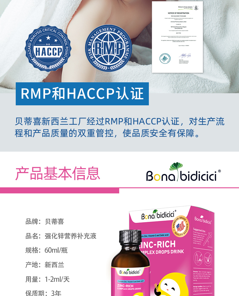 贝蒂喜强化锌Z30富锌滴剂儿童补锌营养60ml