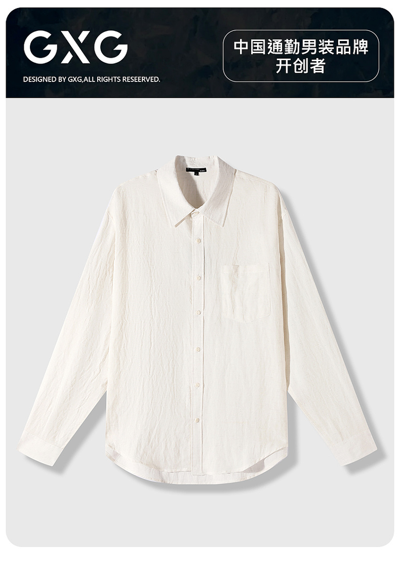 GXG男装26春季日常通勤商务休闲宽松长袖简约翻领男式衬衫K&C