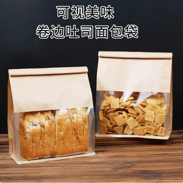折边封口牛皮纸袋 大号 吐司面包袋 牛皮纸点心袋打包袋 5个/50个